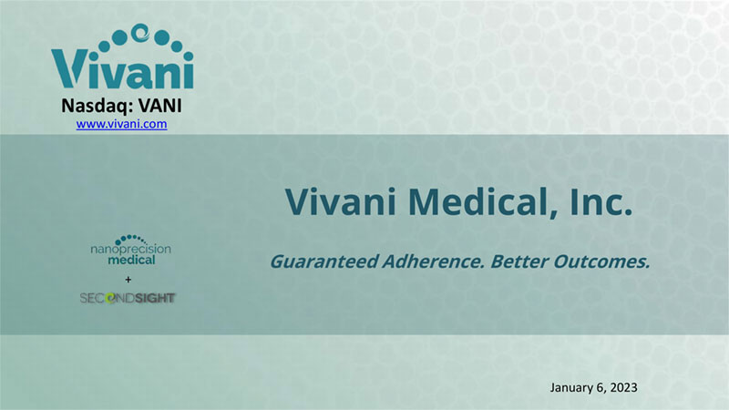 Vivani Medical, Inc. Guaranteed Adherence. Better Outcomes. Nasdaq: VANI January 6, 2023 www.vivani.com +