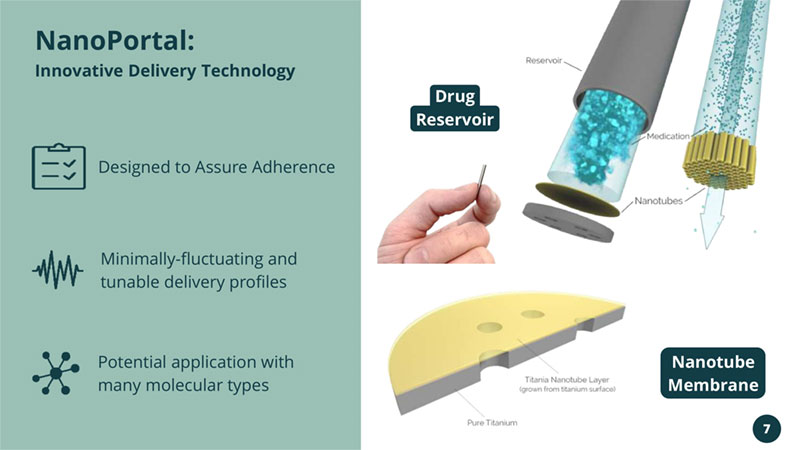 Potential application with many molecular types Designed to Assure Adherence Minimally - fluctuating and tunable delivery profiles NanoPortal: Innovative Delivery Technology Drug Reservoir Nanotube Membrane 7