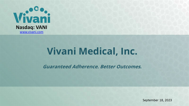 Vivani Medical, Inc. Guaranteed Adherence. Better Outcomes. Nasdaq: VANI September 18, 2023 www.vivani.com
