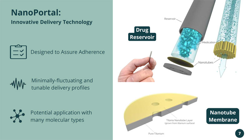 Potential application with many molecular types Designed to Assure Adherence Minimally-fluctuating and tunable delivery profiles NanoPortal: Innovative Delivery Technology Drug Reservoir Nanotube Membrane 7