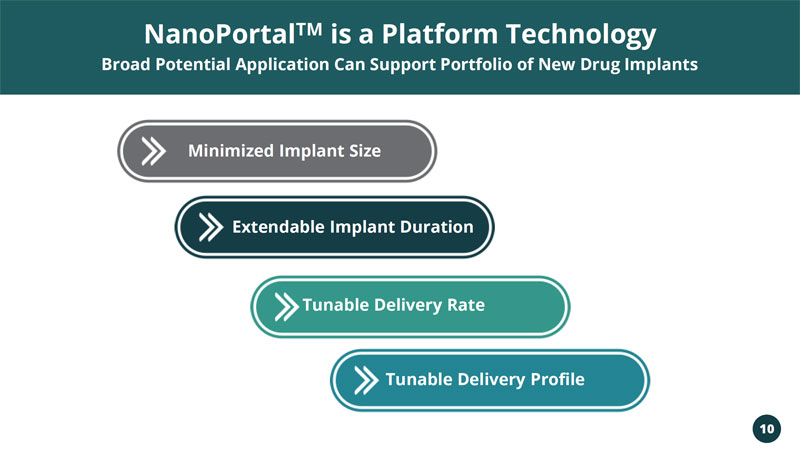 Minimized Implant Size Extendable Implant Duration Tunable Delivery Rate Tunable Delivery Profile NanoPortal TM is a Platform Technology Broad Potential Application Can Support Portfolio of New Drug Implants 10