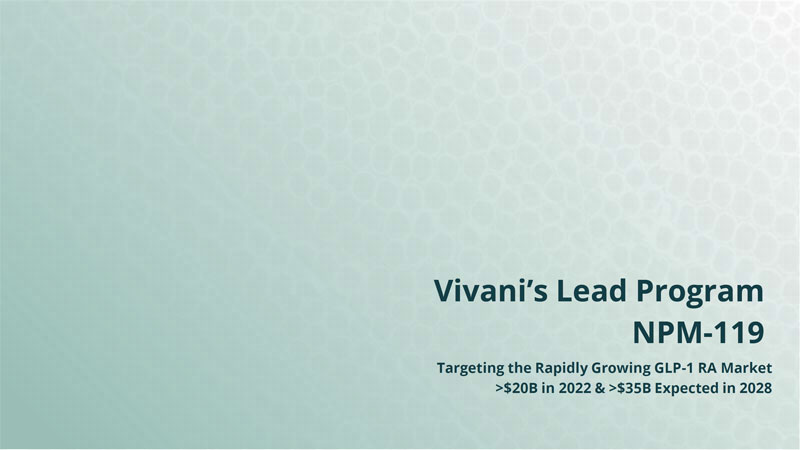 Targeting the Rapidly Growing GLP -1 RA Market >$20B in 2022 & >$35B Expected in 2028 Vivani’s Lead Program NPM-119