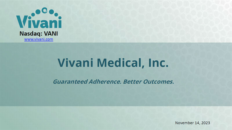Vivani Medical, Inc. Guaranteed Adherence. Better Outcomes. Nasdaq: VANI November 14, 2023 www.vivani.com