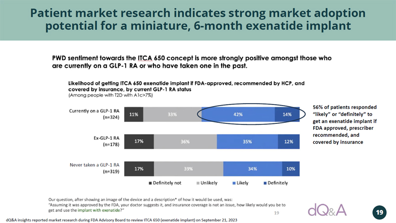 19 Patient market research indicates strong market adoption potential for a miniature, 6 - month exenatide implant dQ&A insights reported market research during FDA Advisory Board to review ITCA 650 (exenatide implant) on September 21, 2023 19 Never taken a GLP - 1 RA 56% of patients responded “likely” or “definitely” to get an exenatide implant if FDA approved, prescriber recommended, and covered by insurance