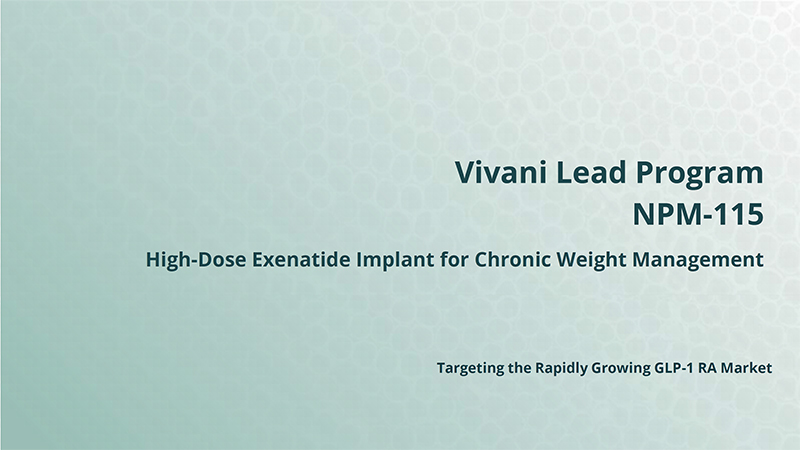 Targeting the Rapidly Growing GLP - 1 RA Market Vivani Lead Program NPM - 115 High - Dose Exenatide Implant for Chronic Weight Management