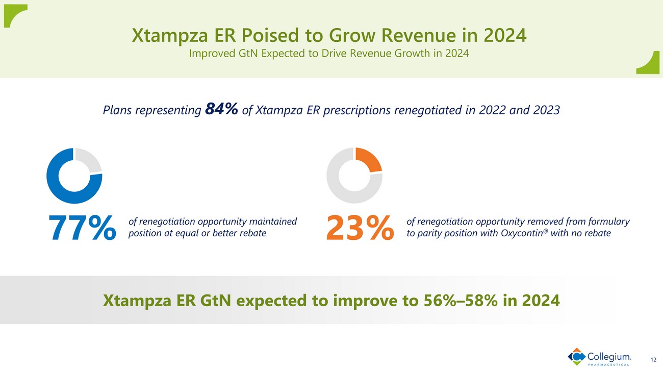 12 Xtampza ER Poised to Grow Revenue in 2024 Improved GtN Expected to Drive Revenue Growth in 2024 7 7% of renegotiation opportunity maintained position at equal or better rebate 23 % of renegotiation opportunity removed from formulary to parity position with Oxycontin ® with no rebate Plans representing 84% of Xtampza ER prescriptions renegotiated in 2022 and 2023 Xtampza ER GtN expected to improve to 56% – 58% in 2024