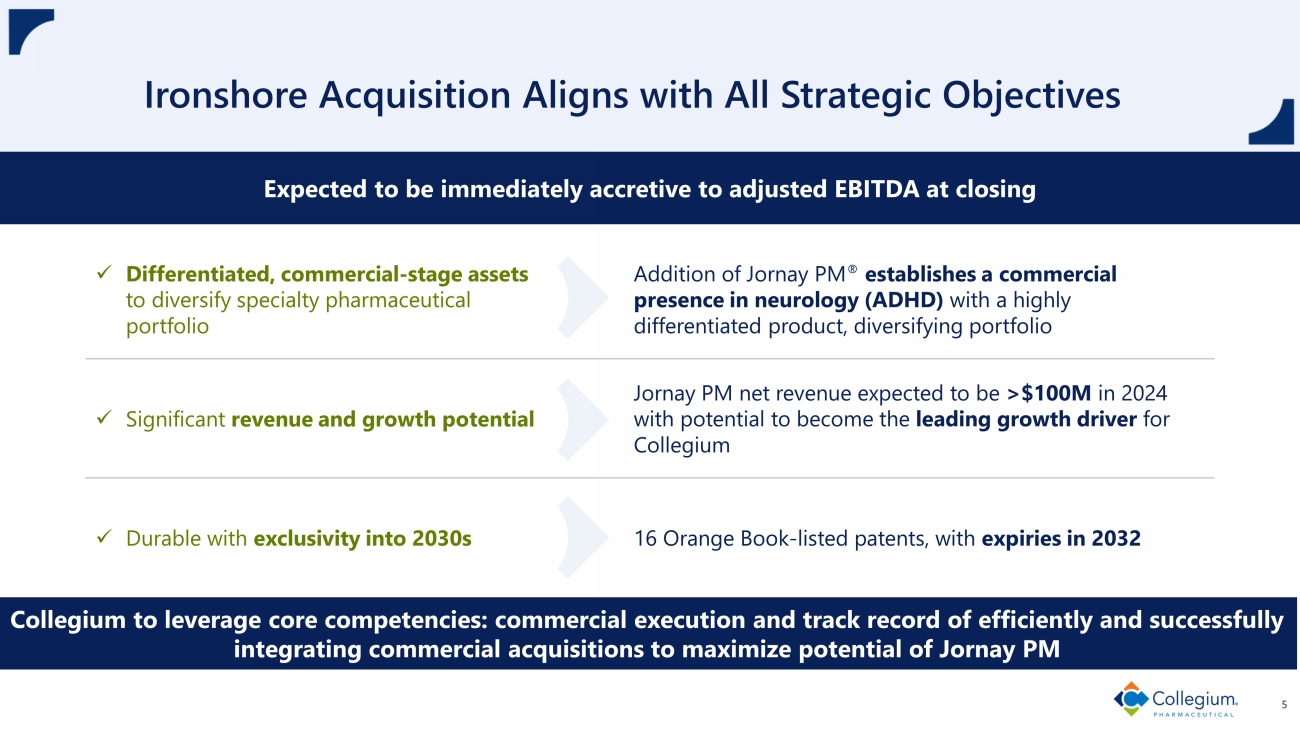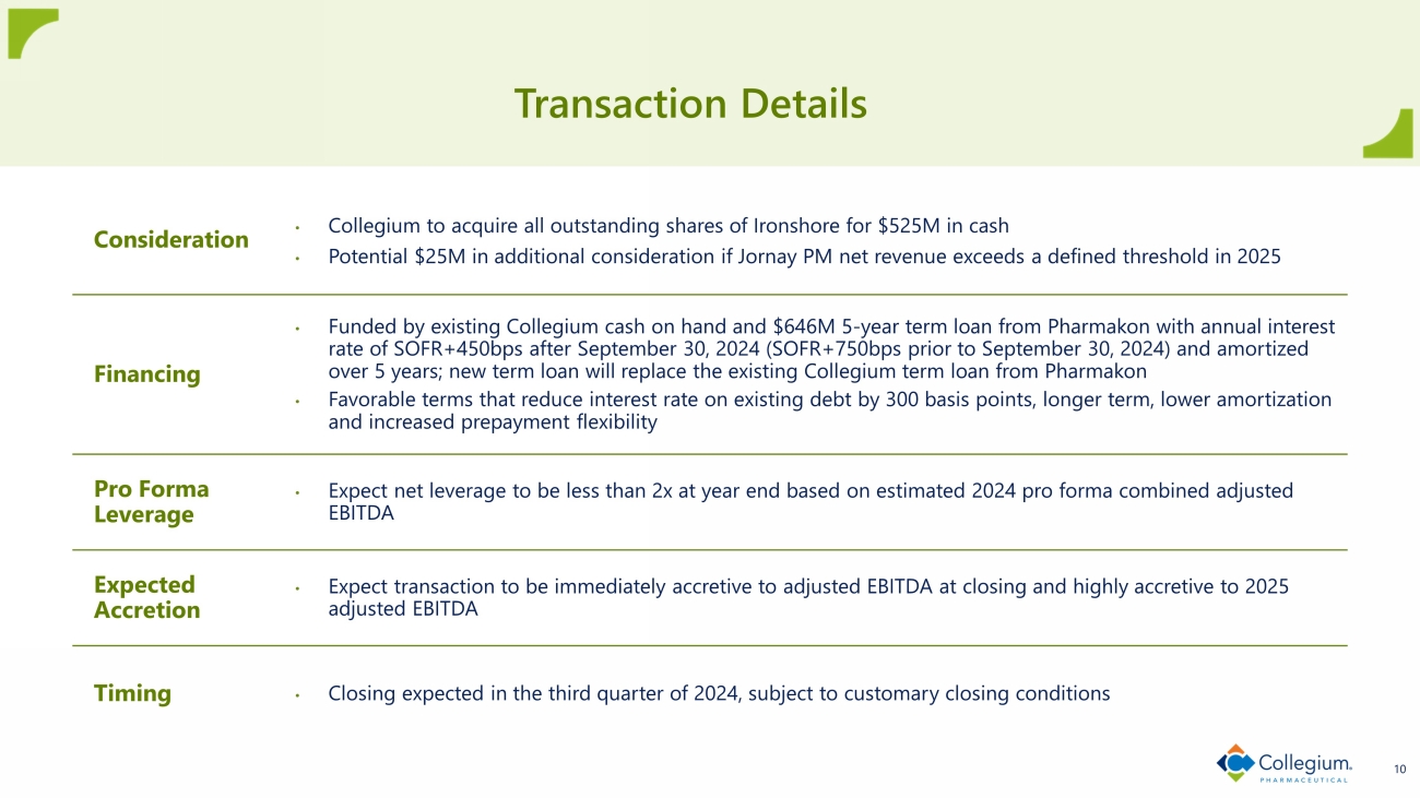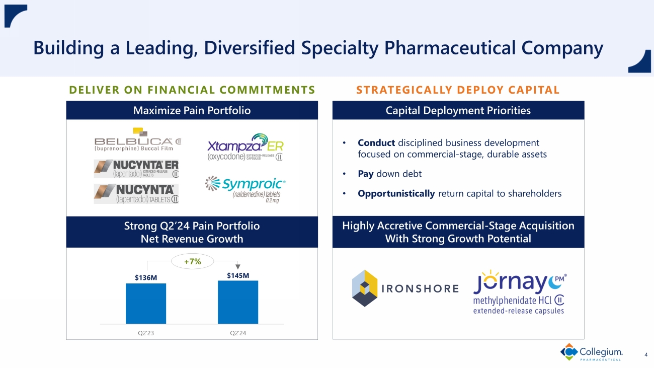 Collegium to Acquire Ironshore Therapeutics July 29, 2024 | Nasdaq: COLL