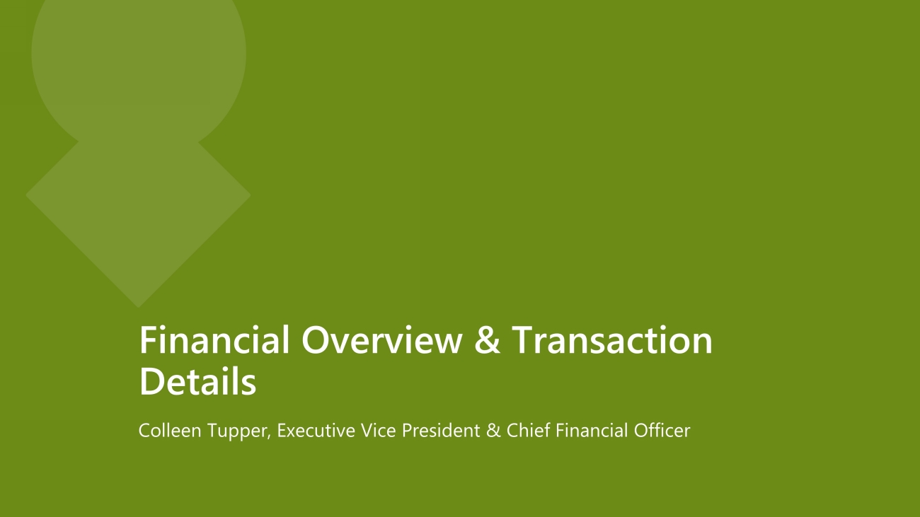 Financial Overview & Transaction Details Colleen Tupper, Executive Vice President & Chief Financial Officer