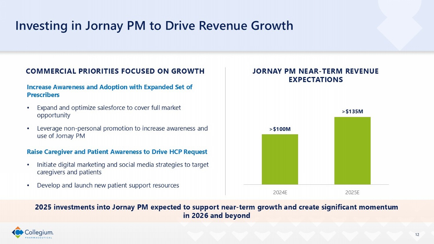 Jornay PM Recognized for Symptom Control by HCPS: 11 Jornay PM: Strong Brand Fundamentals from HCP’s Perspective 1 1. ADHD Long - Acting Stimulant Market ATU2 Q4, 2023. Jornay PM Considered Highly Favorable and Patient/Caregiver Requests Influence Prescribing # 1 recognized branded ADHD medication for achieving all - day symptom control with one dose # 1 recognized branded ADHD medication for controlling after school/work and evening symptoms # 1 highest rated branded ADHD medication in terms of product favorability Patient/Caregiver request is a top influencer of trial by HCP