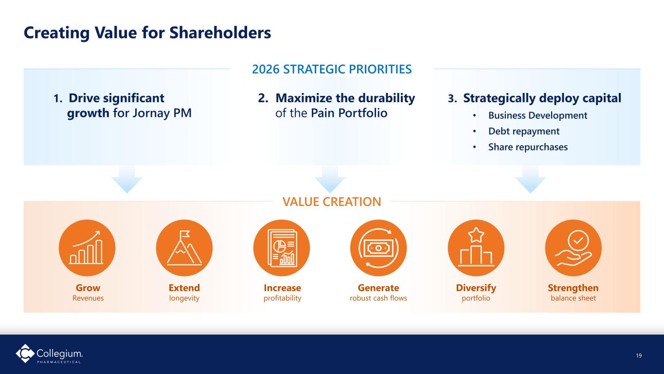 Drive further growth for Jornay PM 6 Strategic Priorities to Drive Value Creation  Grows revenue  Extends longevity  Increases profitability  Generates robust cash flows  Diversifies portfolio  Strengthens balance sheet VALUE CREATION 2026 Strategic Priorities Maximize the durability of the Pain Portfolio Strategically deploy capital • Business development • Debt repayment • Share repurchases
