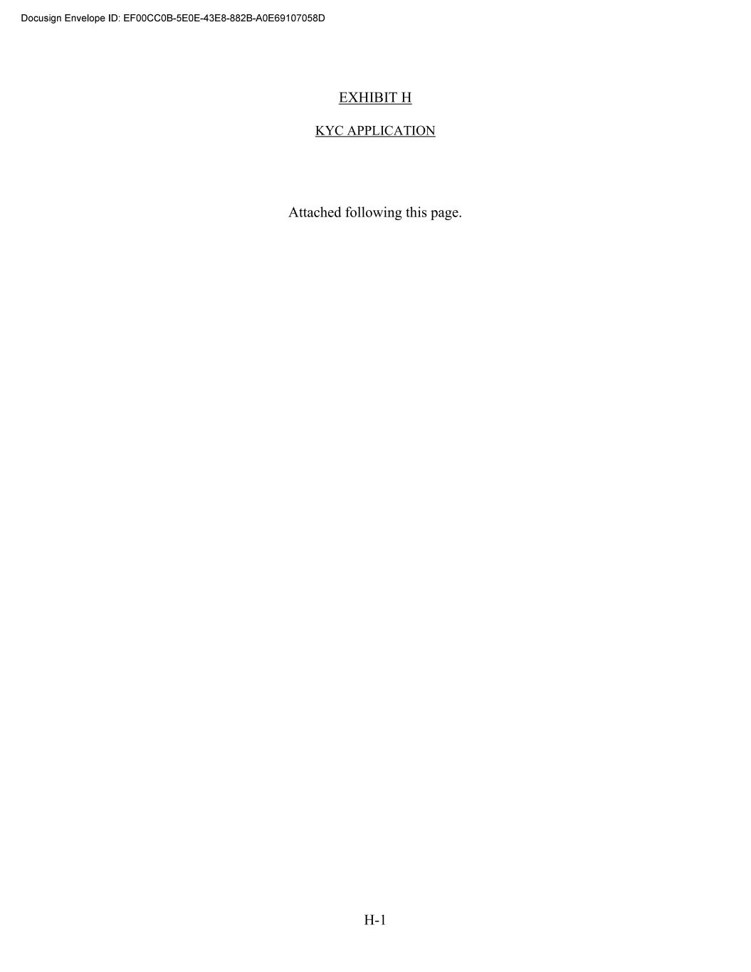 H-1 EXHIBIT H KYC APPLICATION Attached following this page.