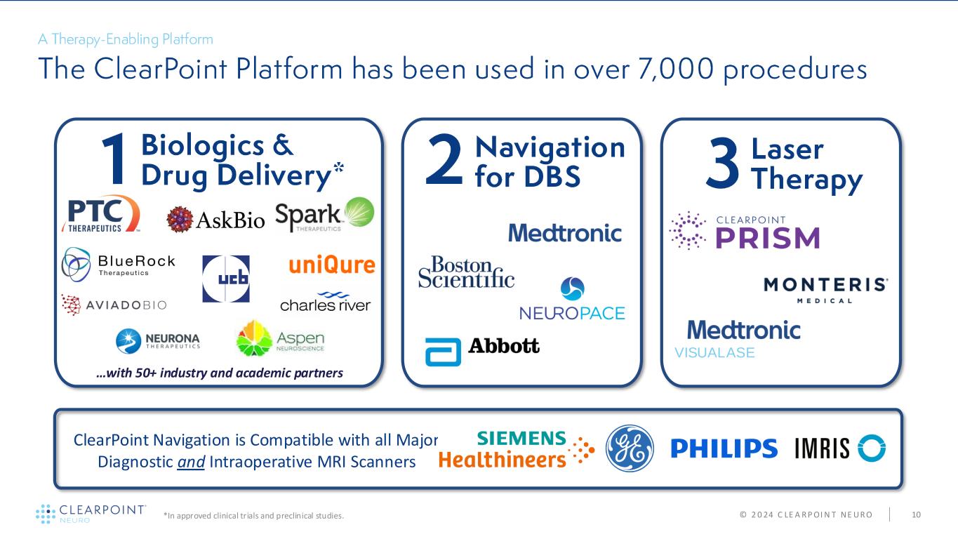 © 2 0 24 C LE A R P OI N T NE UR O 10 VISUALASE ClearPoint Navigation is Compatible with all Major Diagnostic and Intraoperative MRI Scanners …with 50+ industry and academic partners *In approved clinical trials and preclinical studies.