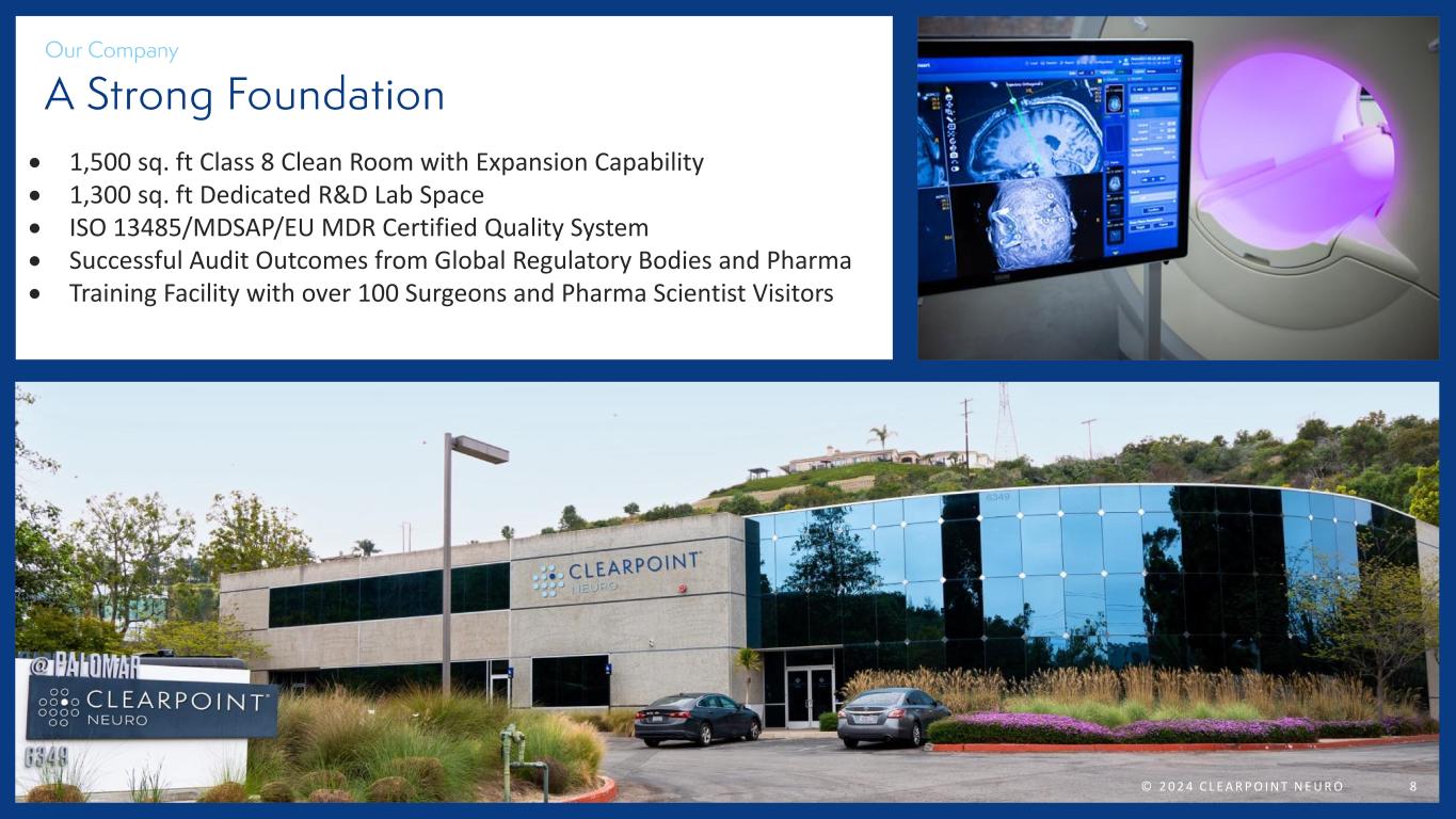 7 (A) (B) (B,D) © 2 0 2 4 C L E A R P O I N T N E U R O (C) Revenue Guidance $7.4 $11.2 $12.8 $16.3 $20.6 $24.0 $30.0 - $33.0 2018 2019 2020 2021 2022 2023 2024 (A) Estimated and subject to revision (B) Unaudited as of, and for the quarter ended, September 30,2024 (C) Including owned and licensed patents (D) For the Trailing Twelve Months (TTM)