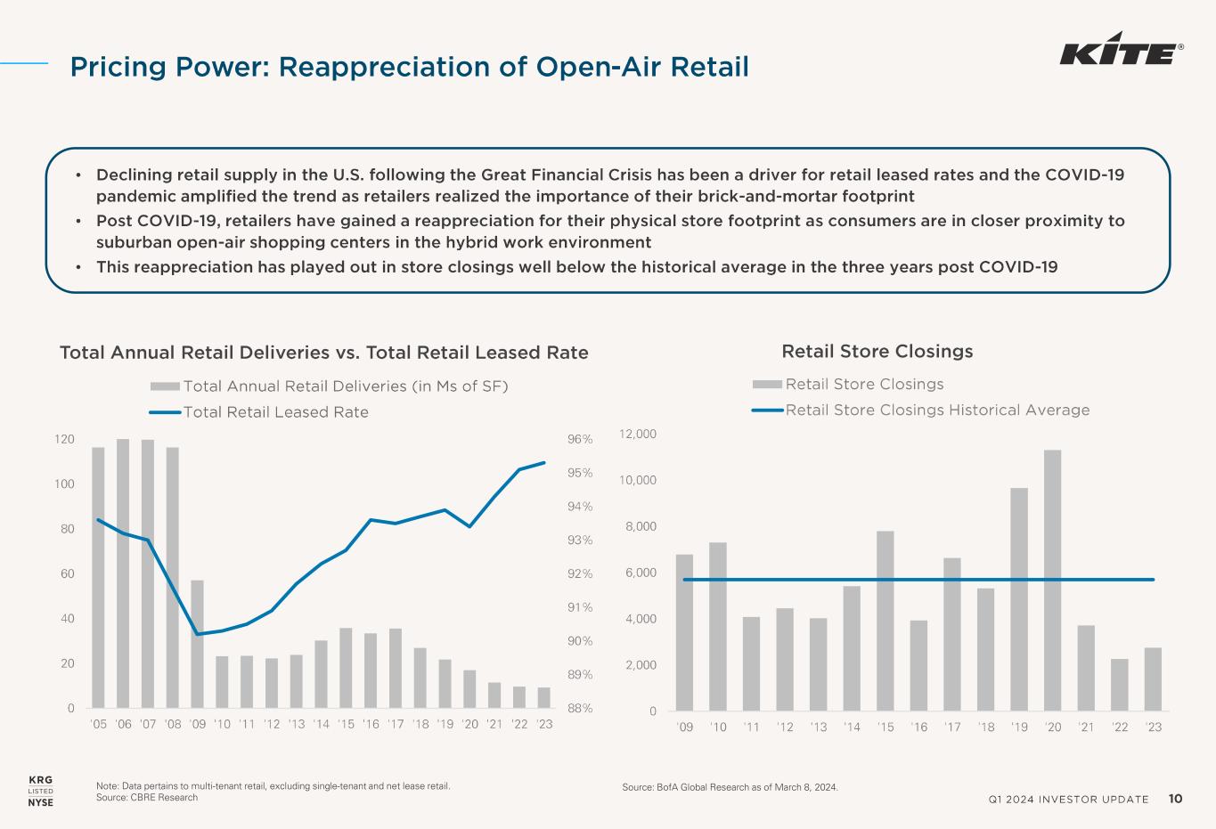 • • • Note: Data pertains to multi-tenant retail, excluding single-tenant and net lease retail. Source: CBRE Research Source: BofA Global Research as of March 8, 2024.