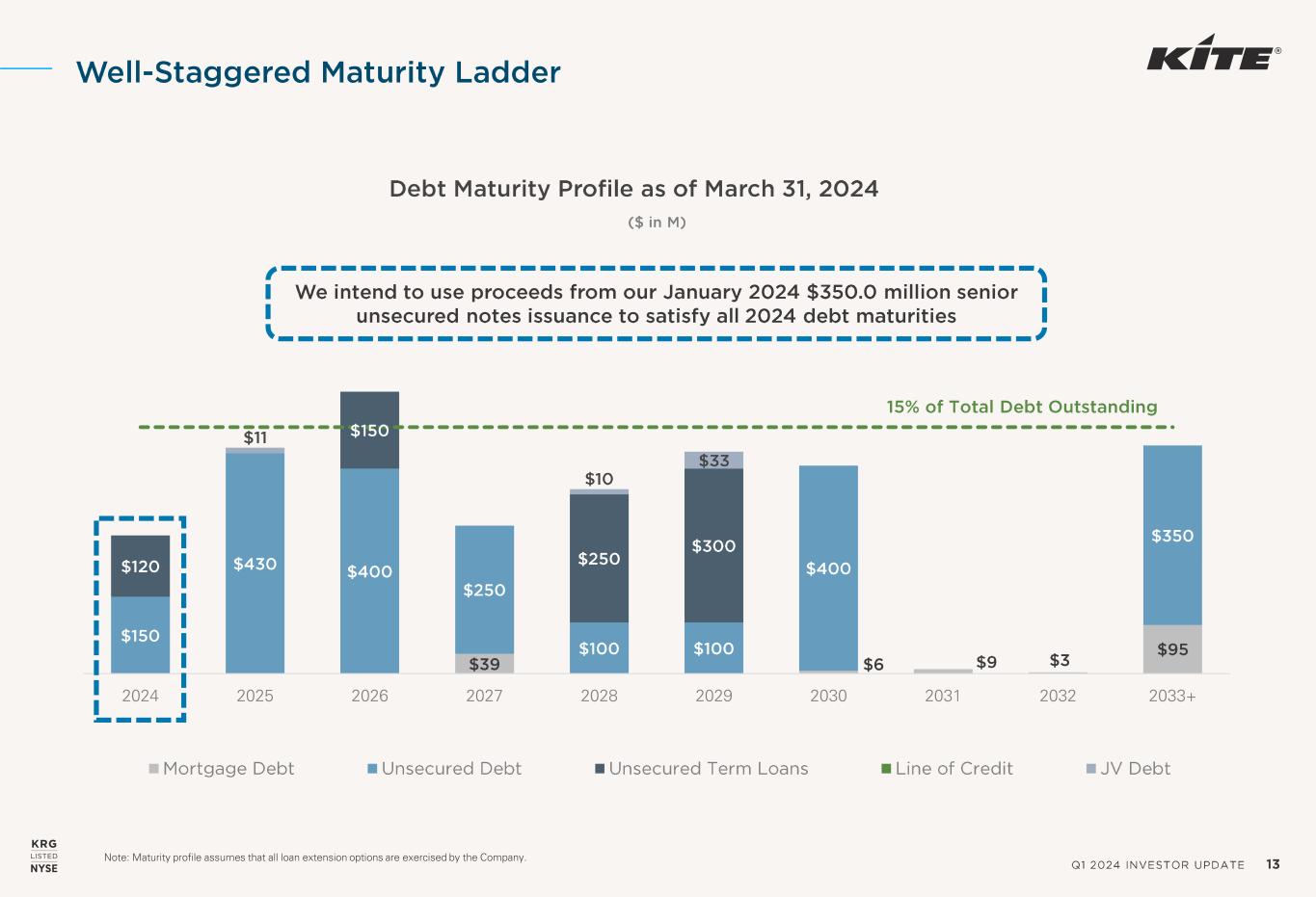 2024 2025 2026 2027 2028 2029 2030 2031 2032 2033+ Note: Maturity profile assumes that all loan extension options are exercised by the Company.