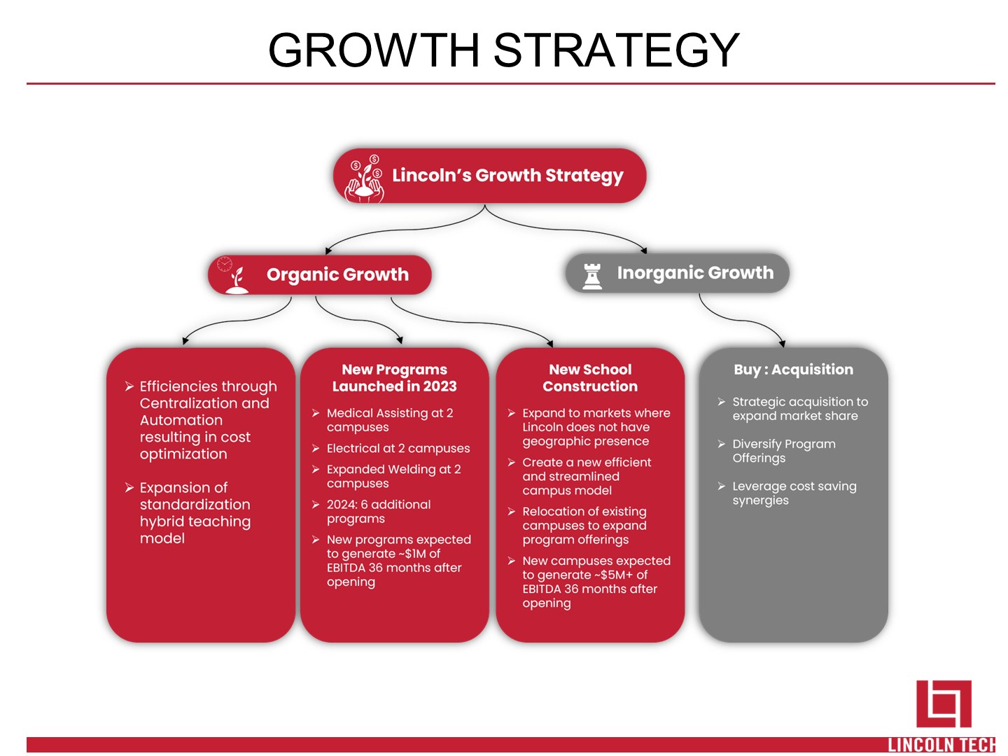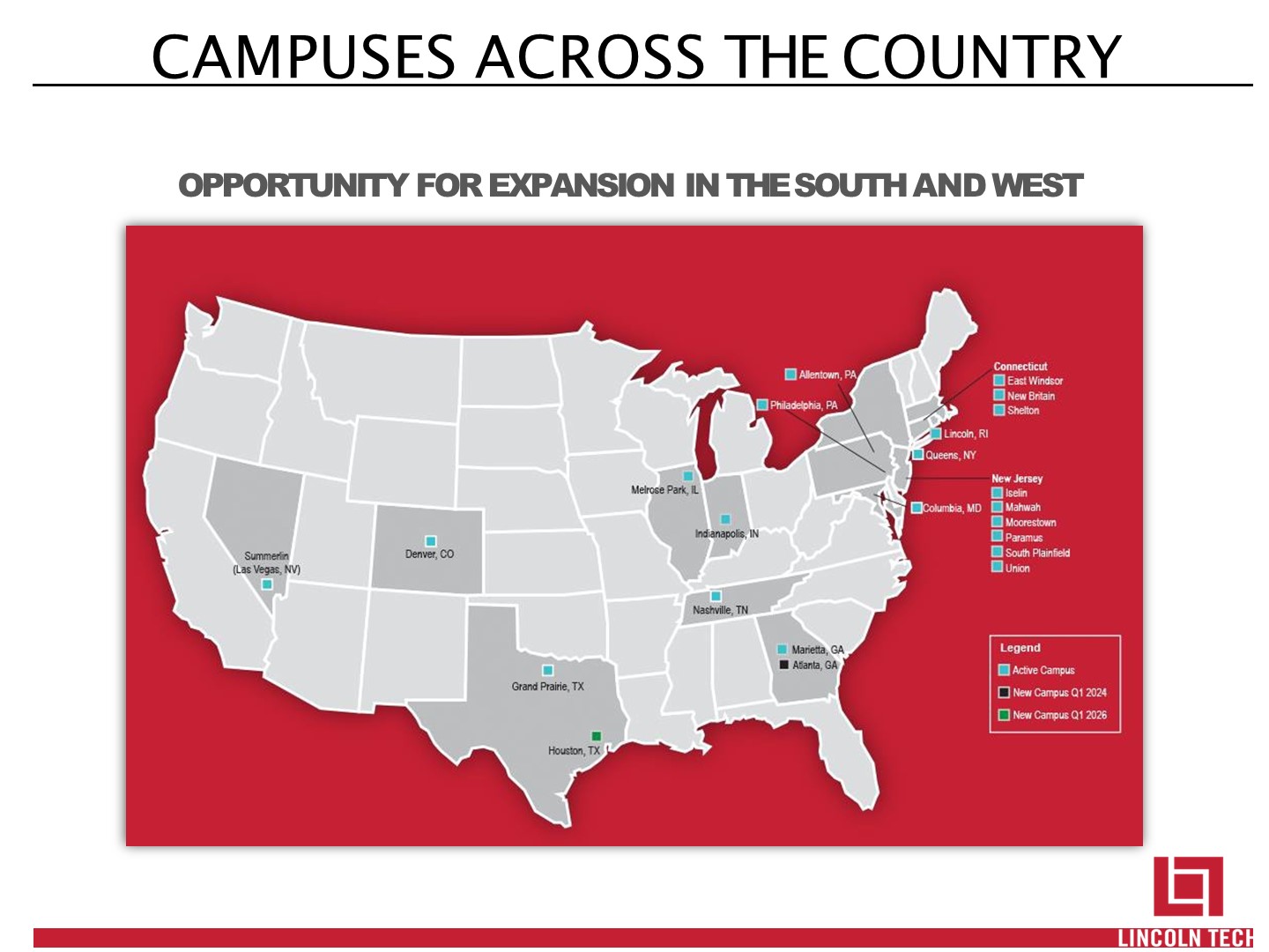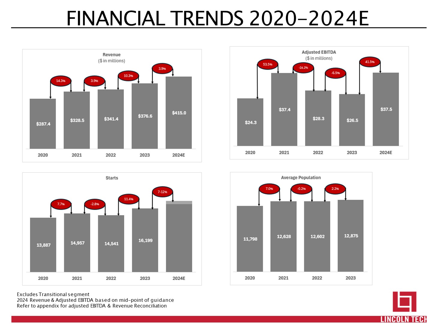 SAFE HARBOR STATEMENT   Statements in this presentation regarding Lincoln’s business that are not historical facts may be “forward-looking statements” that involve risks and uncertainties. Forward-looking statements should not be read as a guarantee of future performance or results and will not necessarily be accurate indications of the times at, or by, which such performance or results will be achieved. Forward-looking statements are based on information available at the time those statements are made and/or management’s good faith belief as of that time with respect to future events and are subject to risks and uncertainties that could cause actual performance or results to differ materially from those expressed in or suggested by the forward-looking statements. Important factors that could cause such differences include, but are not limited to: our failure to comply with the extensive regulatory framework applicable to our industry or our failure to obtain timely regulatory approvals in connection with a change of control of our company or acquisitions; our success in updating and expanding the content of existing programs and developing new programs in a cost-effective manner or on a timely basis; risks associated with changes in applicable federal laws and regulations, including final rules that took effect during 2011 and other pending rulemaking by the U.S. Department of Education; uncertainties regarding our ability to comply with federal laws and regulations regarding the 90/10 rule and cohort default rates; risks associated with the opening of new campuses; risks associated with integration of acquired schools; industry competition; our ability to execute our growth strategies; conditions and trends in our industry; the COVID-19 pandemic and its impact on our business and the U.S. and global economics; general economic conditions; and other factors discussed in our annual report on Form 10-K for the year ended December 31, 2023. For a discussion of such risks and uncertainties, which could cause actual results to differ from those contained in the forward-looking statements, see “Risk Factors” in Lincoln’s annual report on Form 10-K for the year ended December 31, 2023. All forward-looking statements are qualified in their entirety by this cautionary statement, and Lincoln undertakes no obligation to revise or update this news release to reflect events or circumstances after the date hereof.