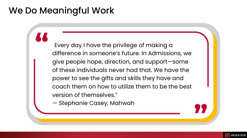 People Are the Difference  Lincoln Tech Is A People First Company  We change lives every day—because our people truly care.