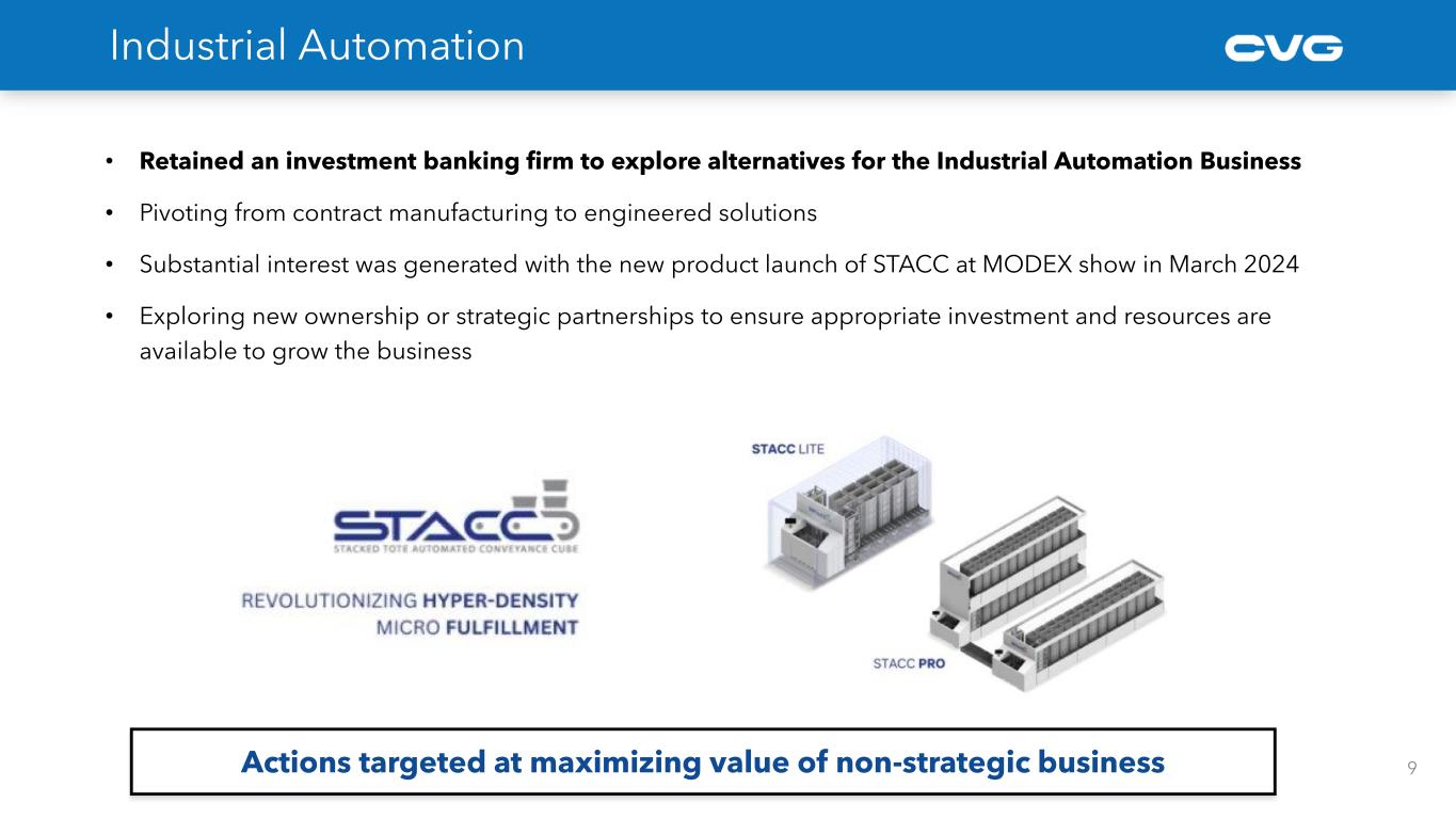 Industrial Automation • Retained an investment banking firm to explore alternatives for the Industrial Automation Business • Pivoting from contract manufacturing to engineered solutions • Substantial interest was generated with the new product launch of STACC at MODEX show in March 2024 • Exploring new ownership or strategic partnerships to ensure appropriate investment and resources are available to grow the business 9Actions targeted at maximizing value of non-strategic business
