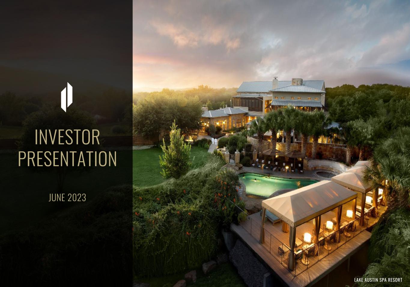 INVESTOR PRESENTATION JUNE 2023 LAKE AUSTIN SPA RESORT