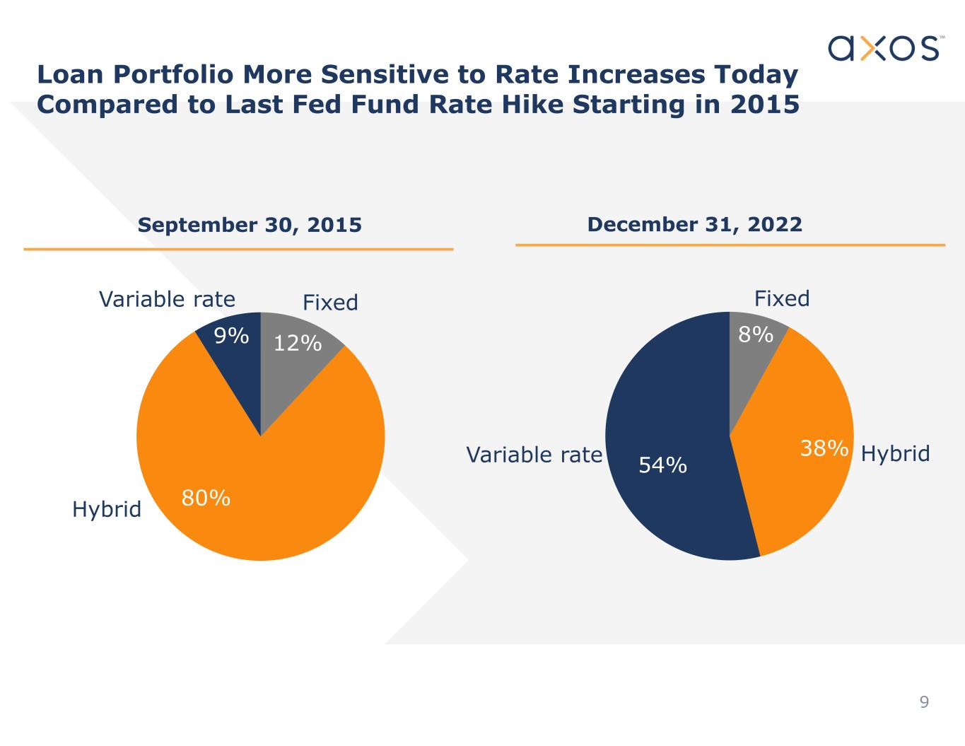 Loan Portfolio More Sensitive to Rate Increases Today Compared to Last Fed Fund Rate Hike Starting in 2015 September 30, 2015 December 31, 2022 12% 80% 9% Fixed Hybrid Variable rate 8% 38% 54% Fixed HybridVariable rate 9