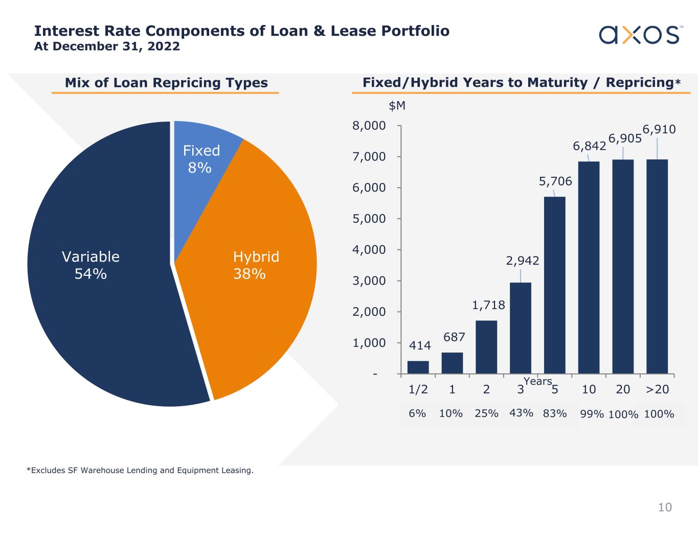 Fixed/Hybrid Years to Maturity / Repricing*Mix of Loan Repricing Types Variable 54% Hybrid 38% Fixed 8% 414 687 1,718 2,942 5,706 6,842 6,905 6,910 - 1,000 2,000 3,000 4,000 5,000 6,000 7,000 8,000 1/2 1 2 3 5 10 20 >20 Years $M 6% 10% 25% 43% 100%100%99%83% *Excludes SF Warehouse Lending and Equipment Leasing. Interest Rate Components of Loan & Lease Portfolio At December 31, 2022 10