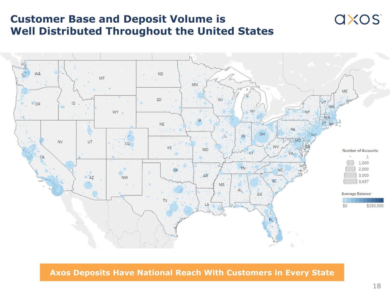 18 Axos Deposits Have National Reach With Customers in Every State Customer Base and Deposit Volume is Well Distributed Throughout the United States