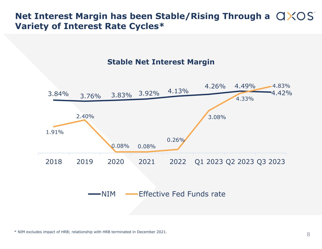 Net Interest Margin has been Stable/Rising Through a Variety of Interest Rate Cycles* Stable Net Interest Margin 3.84% 3.76% 3.83% 3.92% 4.13% 4.26% 4.49% 4.42% 1.91% 2.40% 0.08% 0.08% 0.26% 3.08% 4.33% 4.83% 2018 2019 2020 2021 2022 Q1 2023 Q2 2023 Q3 2023 NIM Effective Fed Funds rate * NIM excludes impact of HRB; relationship with HRB terminated in December 2021. 8
