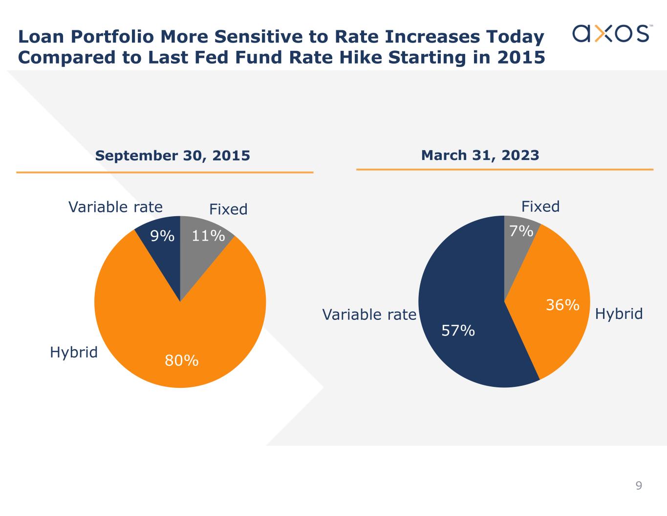 Loan Portfolio More Sensitive to Rate Increases Today Compared to Last Fed Fund Rate Hike Starting in 2015 September 30, 2015 March 31, 2023 11% 80% 9% Fixed Hybrid Variable rate 7% 36% 57% Fixed HybridVariable rate 9