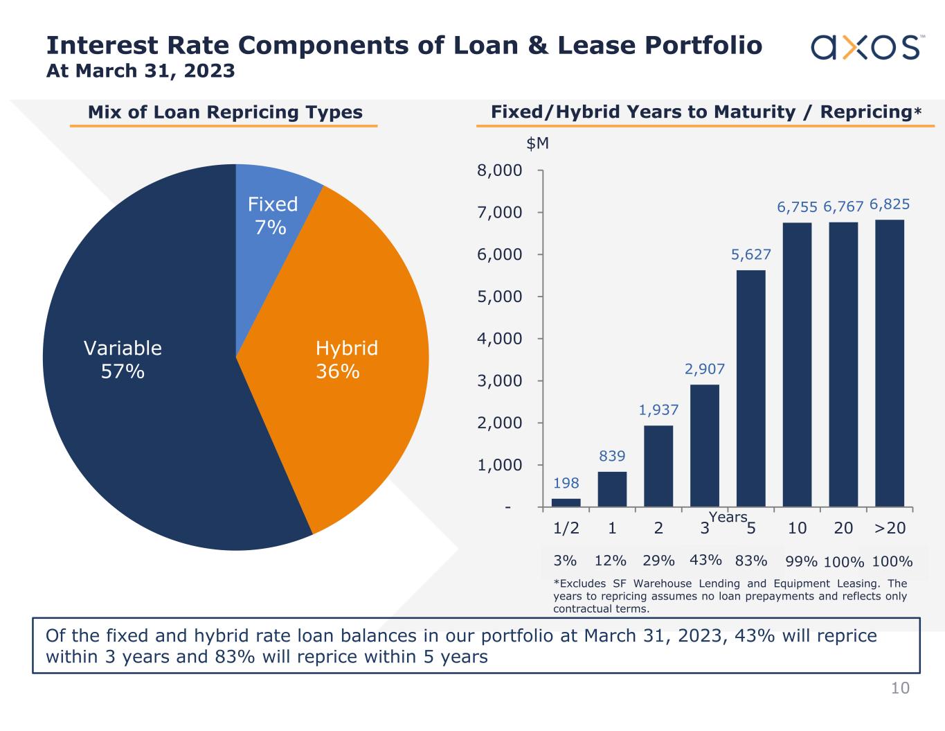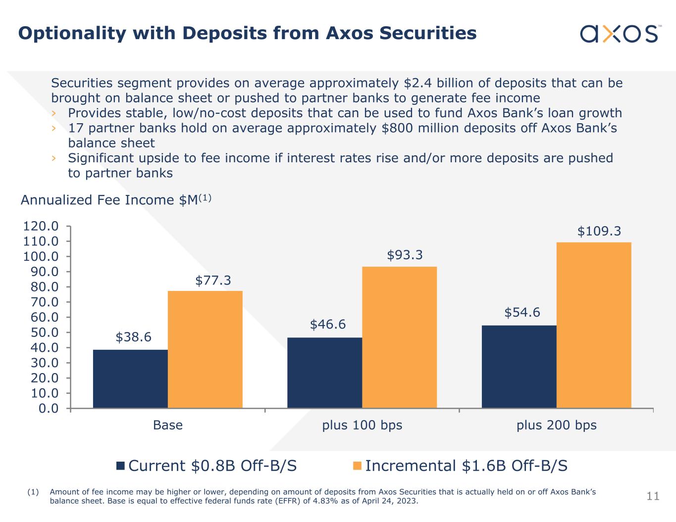 Fixed/Hybrid Years to Maturity / Repricing*Mix of Loan Repricing Types Variable 57% Hybrid 36% Fixed 7% 198 839 1,937 2,907 5,627 6,755 6,767 6,825 - 1,000 2,000 3,000 4,000 5,000 6,000 7,000 8,000 1/2 1 2 3 5 10 20 >20 Years $M 3% 12% 29% 43% 100%100%99%83% *Excludes SF Warehouse Lending and Equipment Leasing. The years to repricing assumes no loan prepayments and reflects only contractual terms. Interest Rate Components of Loan & Lease Portfolio At March 31, 2023 10 Of the fixed and hybrid rate loan balances in our portfolio at March 31, 2023, 43% will reprice within 3 years and 83% will reprice within 5 years