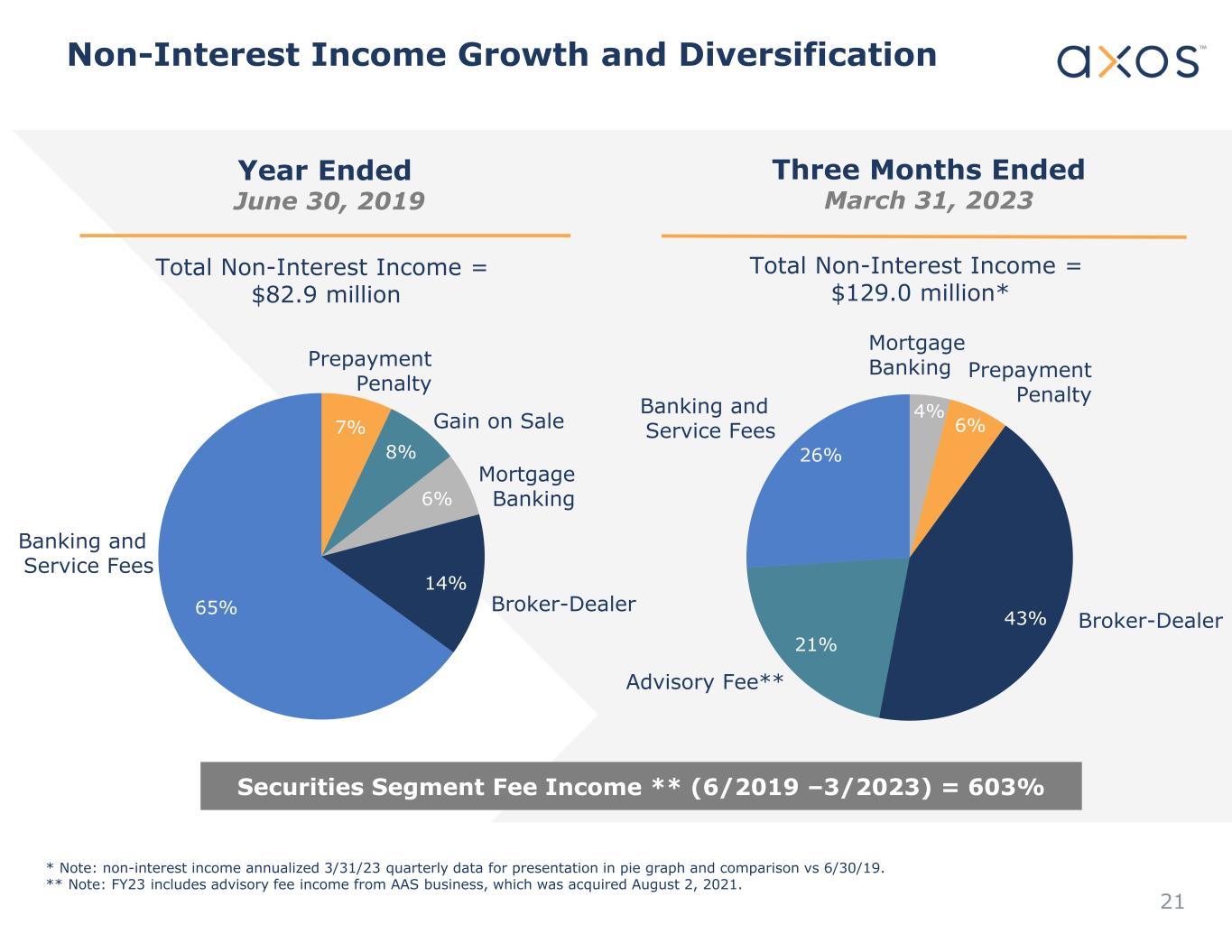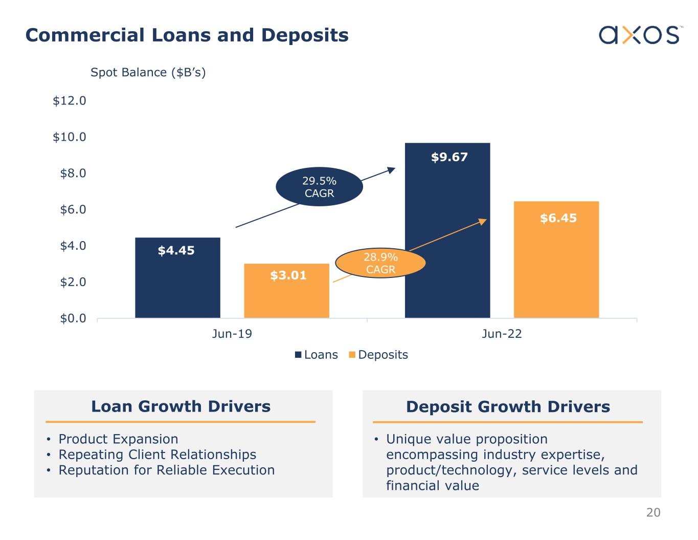 20 Commercial Loans and Deposits • Product Expansion • Repeating Client Relationships • Reputation for Reliable Execution • Unique value proposition encompassing industry expertise, product/technology, service levels and financial value Loan Growth Drivers Deposit Growth Drivers Spot Balance ($B’s) $4.45 $9.67 $3.01 $6.45 $0.0 $2.0 $4.0 $6.0 $8.0 $10.0 $12.0 Jun-19 Jun-22 Loans Deposits 29.5% CAGR 28.9% CAGR