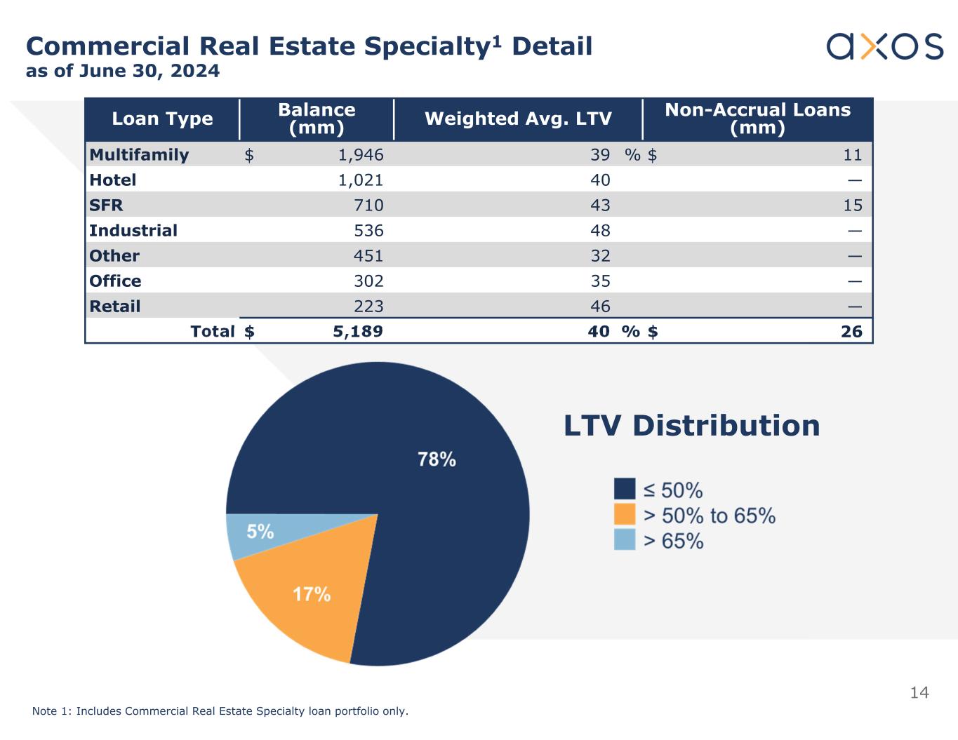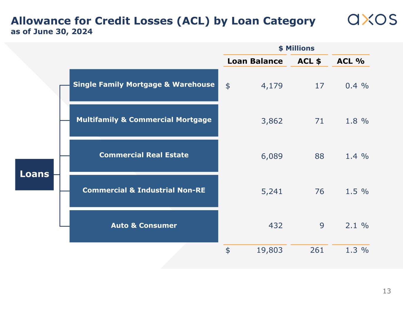 13 Allowance for Credit Losses (ACL) by Loan Category as of June 30, 2024 $ Millions ACL %ACL $Loan Balance 0.4 %17$ 4,179 1.8 %713,862 1.4 %886,089 1.5 %765,241 2.1 %9432 1.3 %261$ 19,803 Single Family Mortgage & Warehouse Multifamily & Commercial Mortgage Commercial Real Estate Commercial & Industrial Non-RE Auto & Consumer Loans