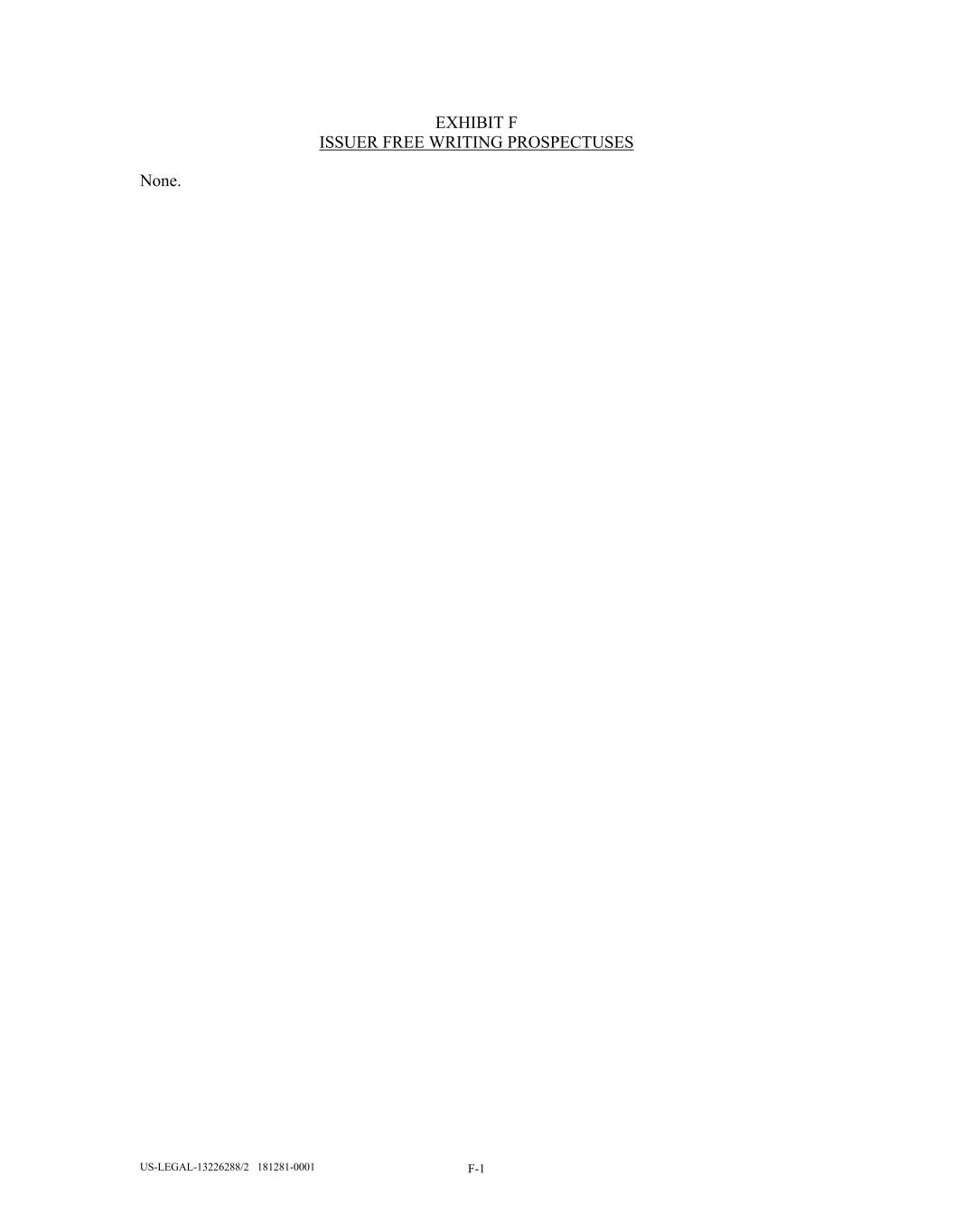 US-LEGAL-13226288/2 181281-0001 F-1 EXHIBIT F ISSUER FREE WRITING PROSPECTUSES None.