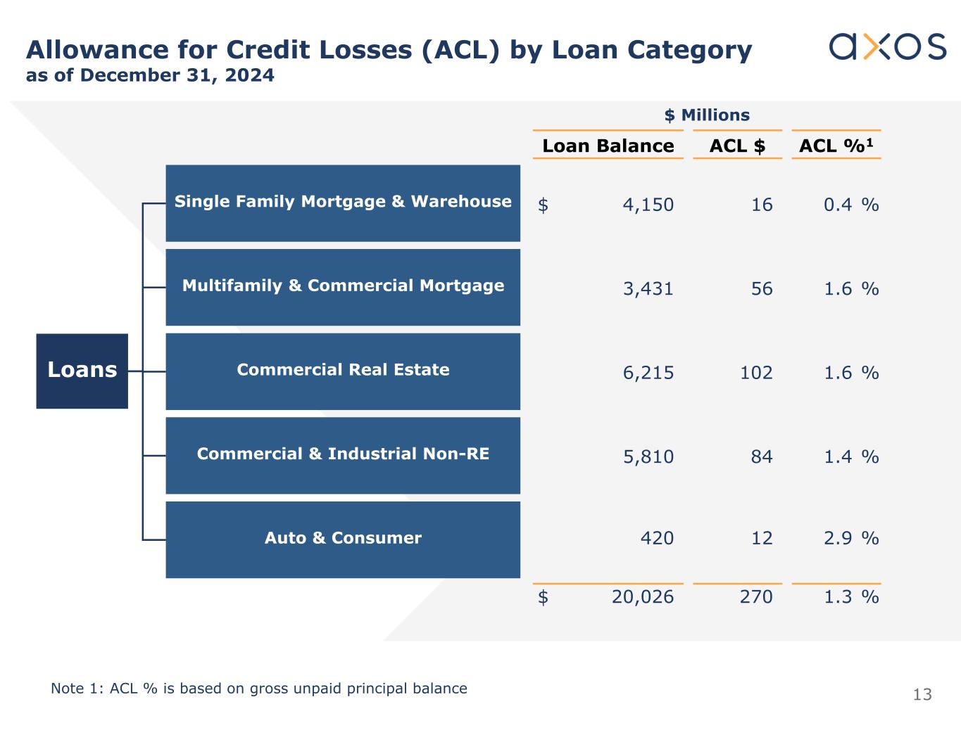 12 Change in Allowance for Credit Losses (ACL) & Unfunded Loan Commitments Reserve (UCL) ($ in millions) ACL + UCL ACL + UCL 5.8