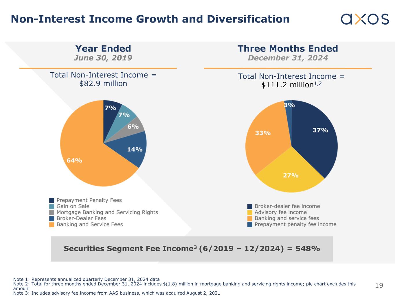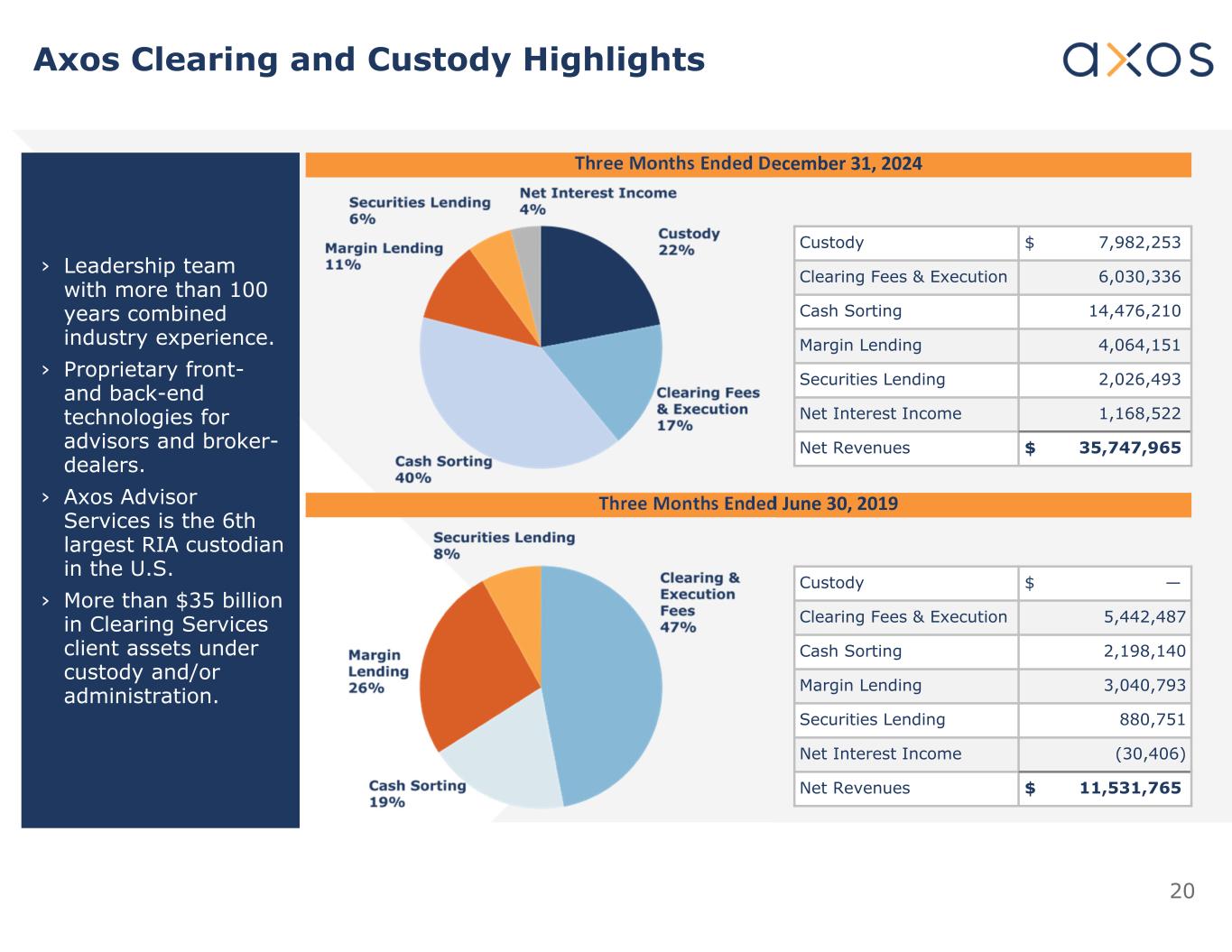 19 Non-Interest Income Growth and Diversification Year Ended June 30, 2019 Three Months Ended December 31, 2024 Securities Segment Fee Income3 (6/2019 – 12/2024) = 548% Total Non-Interest Income = $82.9 million Total Non-Interest Income = $111.2 million1,2 Note 1: Represents annualized quarterly December 31, 2024 data Note 2: Total for three months ended December 31, 2024 includes $(1.8) million in mortgage banking and servicing rights income; pie chart excludes this amount Note 3: Includes advisory fee income from AAS business, which was acquired August 2, 2021