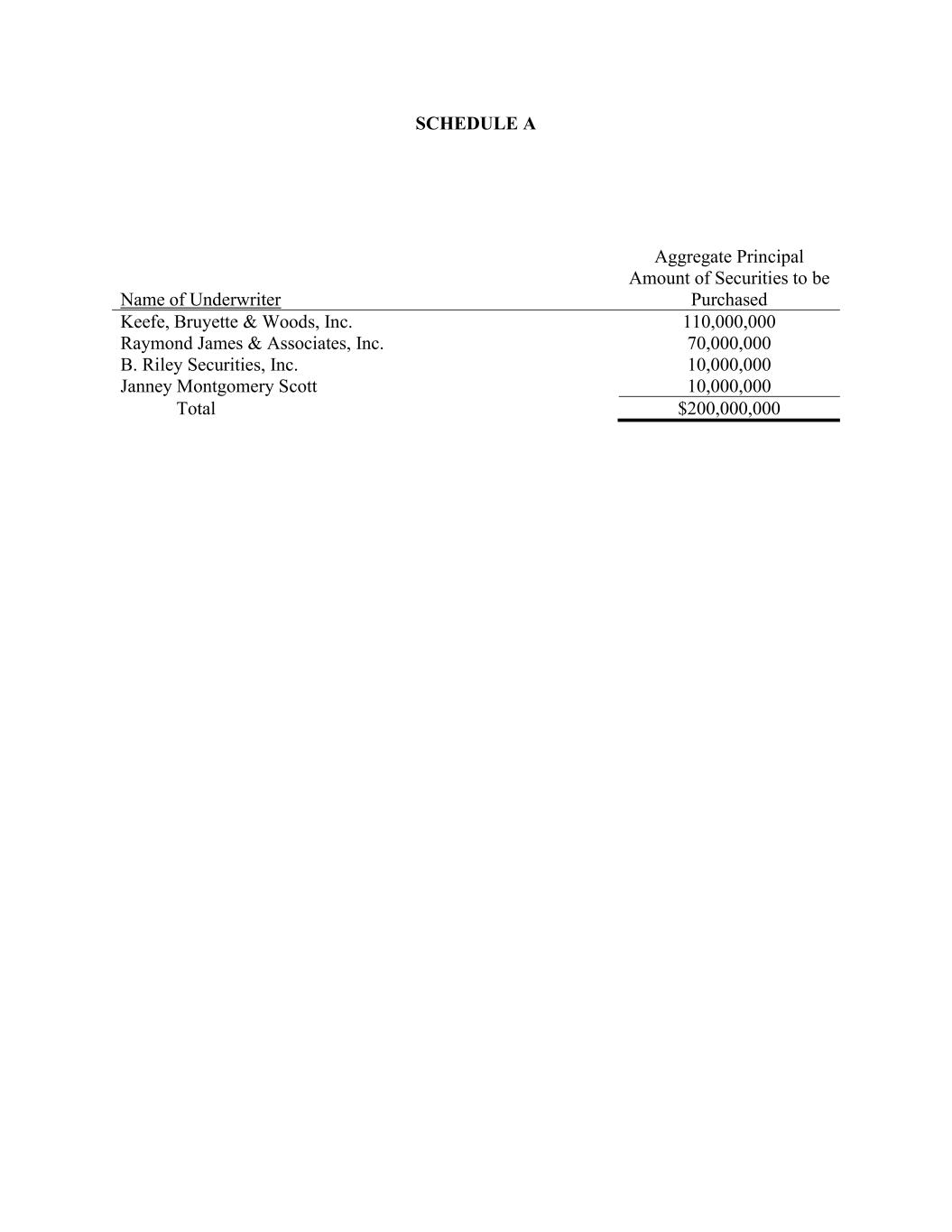 SCHEDULE A Name of Underwriter Aggregate Principal Amount of Securities to be Purchased Keefe, Bruyette & Woods, Inc. 110,000,000 Raymond James & Associates, Inc. 70,000,000 B. Riley Securities, Inc. 10,000,000 Janney Montgomery Scott 10,000,000 Total $200,000,000