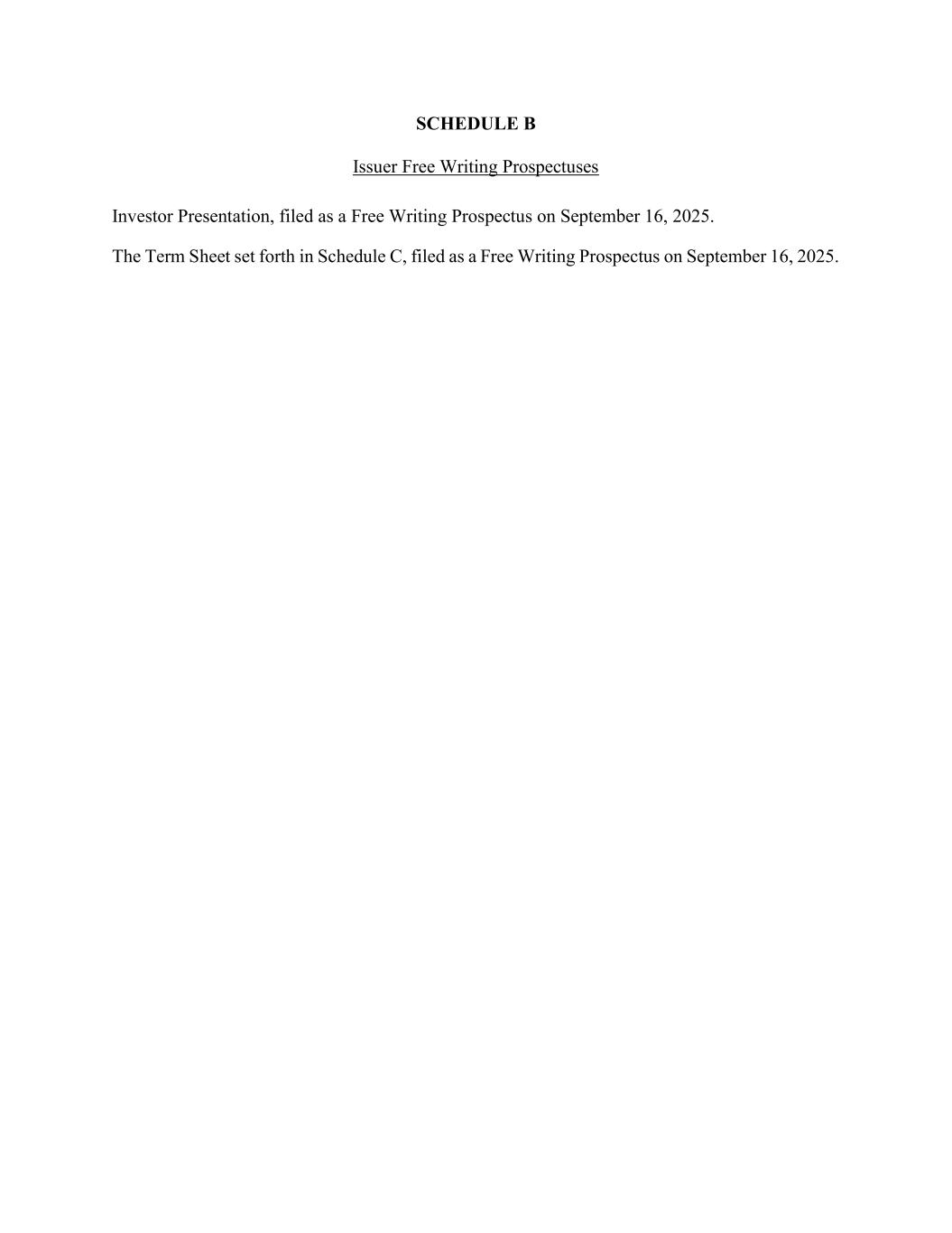 SCHEDULE B Issuer Free Writing Prospectuses Investor Presentation, filed as a Free Writing Prospectus on September 16, 2025. The Term Sheet set forth in Schedule C, filed as a Free Writing Prospectus on September 16, 2025.