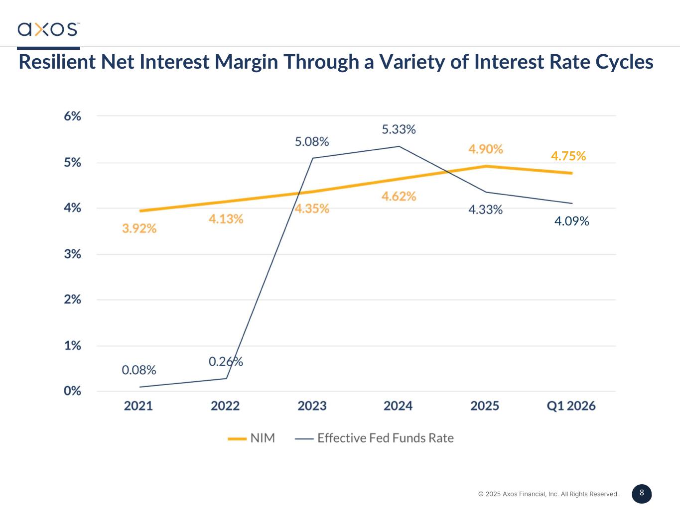 8 © 2025 Axos Financial, Inc. All Rights Reserved. 8 Resilient Net Interest Margin Through a Variety of Interest Rate Cycles 4.09% 4.75%