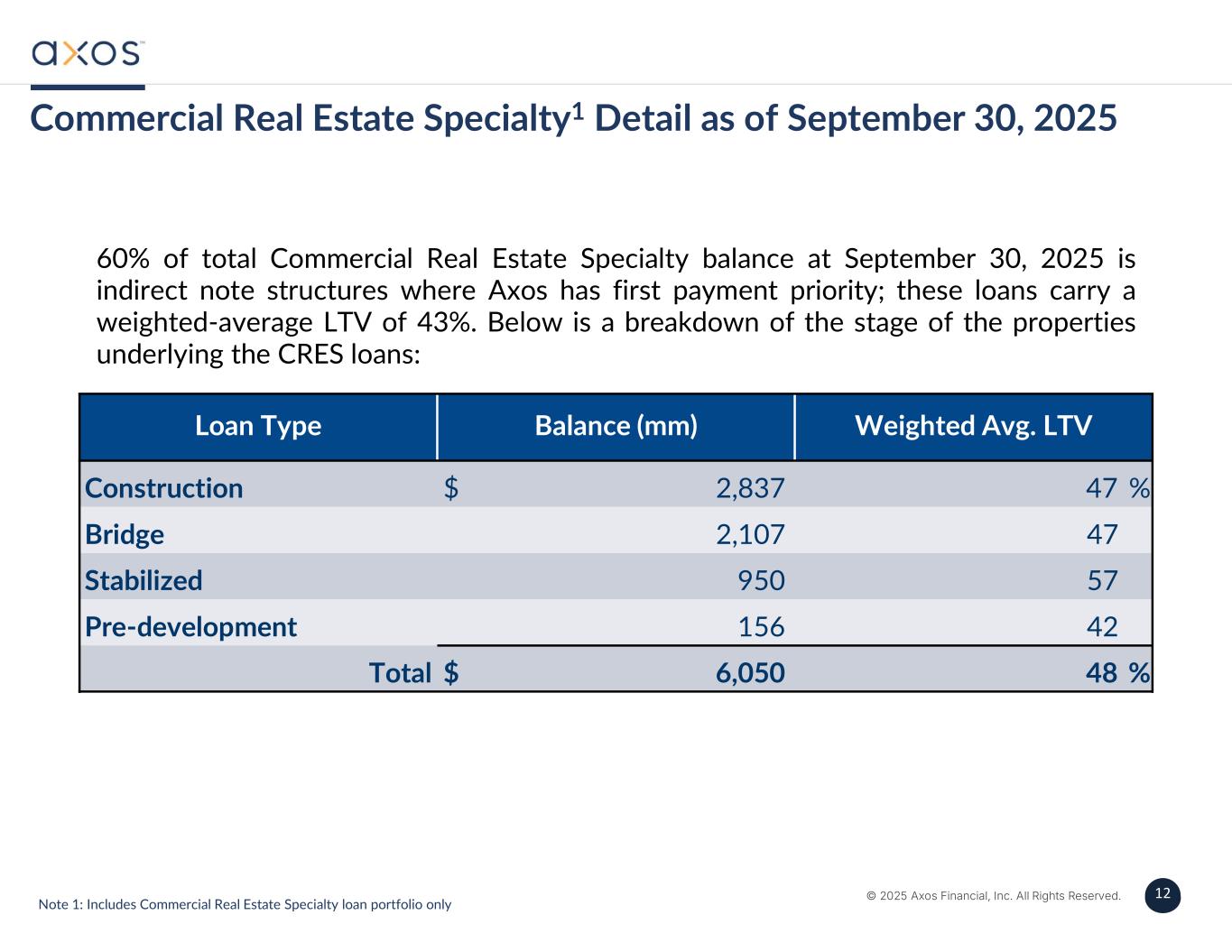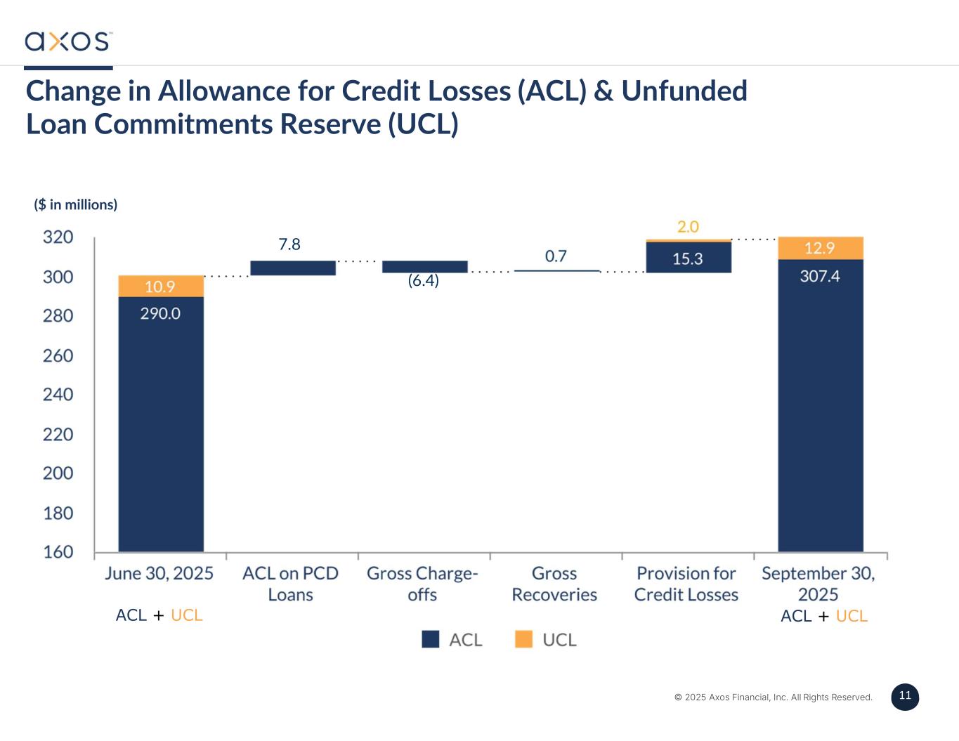 11 © 2025 Axos Financial, Inc. All Rights Reserved. 11 Change in Allowance for Credit Losses (ACL) & Unfunded Loan Commitments Reserve (UCL) ($ in millions) ACL + UCL ACL + UCL (6.4) 7.8 7.8