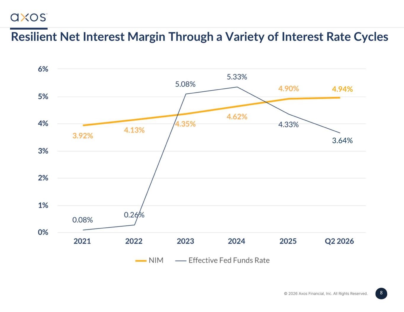 8 © 2026 Axos Financial, Inc. All Rights Reserved. 8 Resilient Net Interest Margin Through a Variety of Interest Rate Cycles 3.64% 4.94%