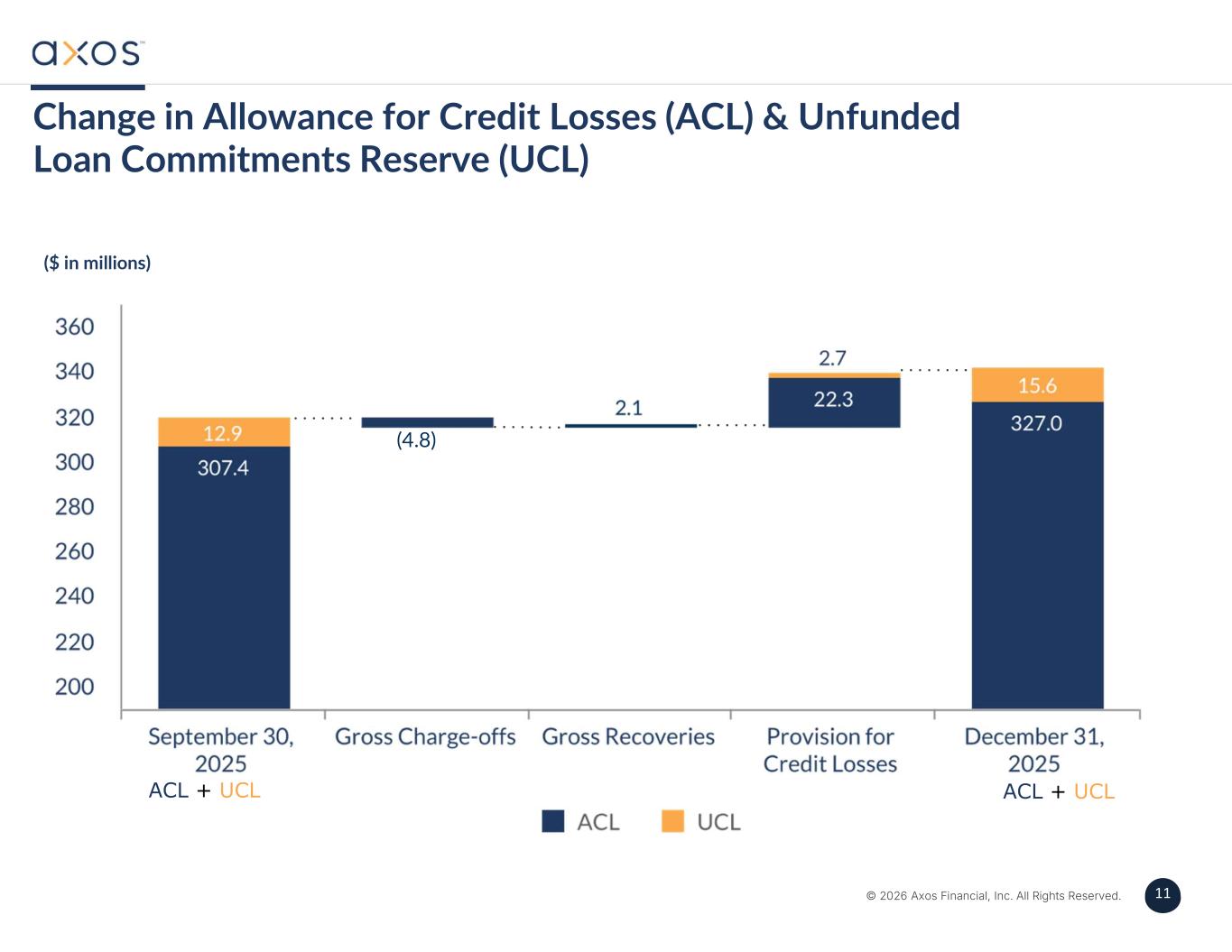 11 © 2026 Axos Financial, Inc. All Rights Reserved. 11 Change in Allowance for Credit Losses (ACL) & Unfunded Loan Commitments Reserve (UCL) ($ in millions) ACL + UCL ACL + UCL 7.8 (4.8)