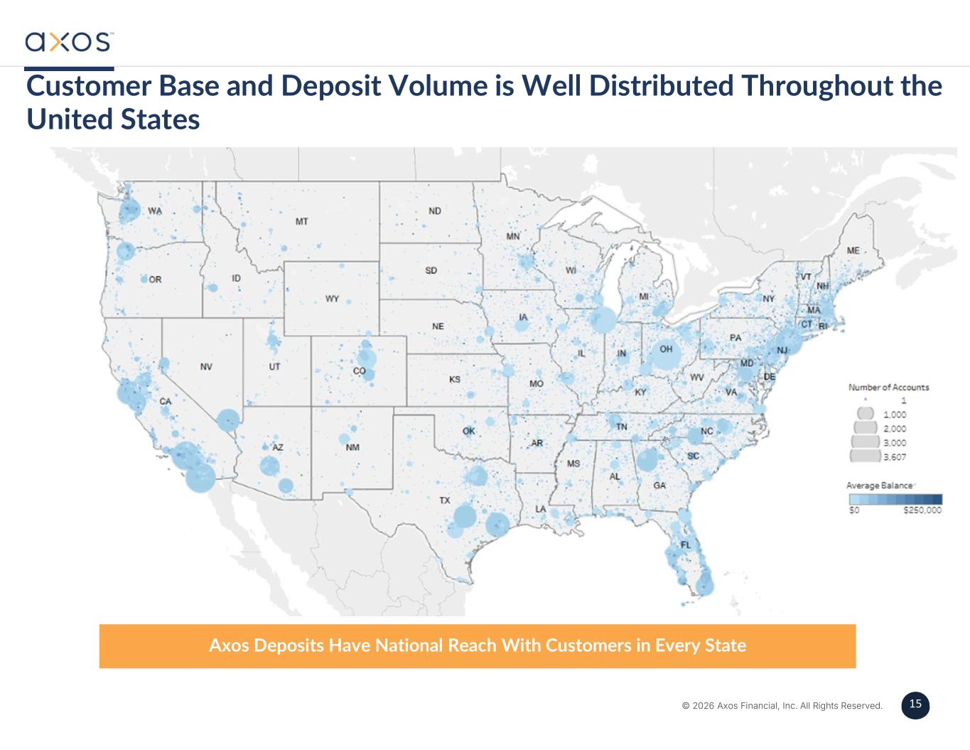 15 © 2026 Axos Financial, Inc. All Rights Reserved. 15 Axos Deposits Have National Reach With Customers in Every State Customer Base and Deposit Volume is Well Distributed Throughout the United States
