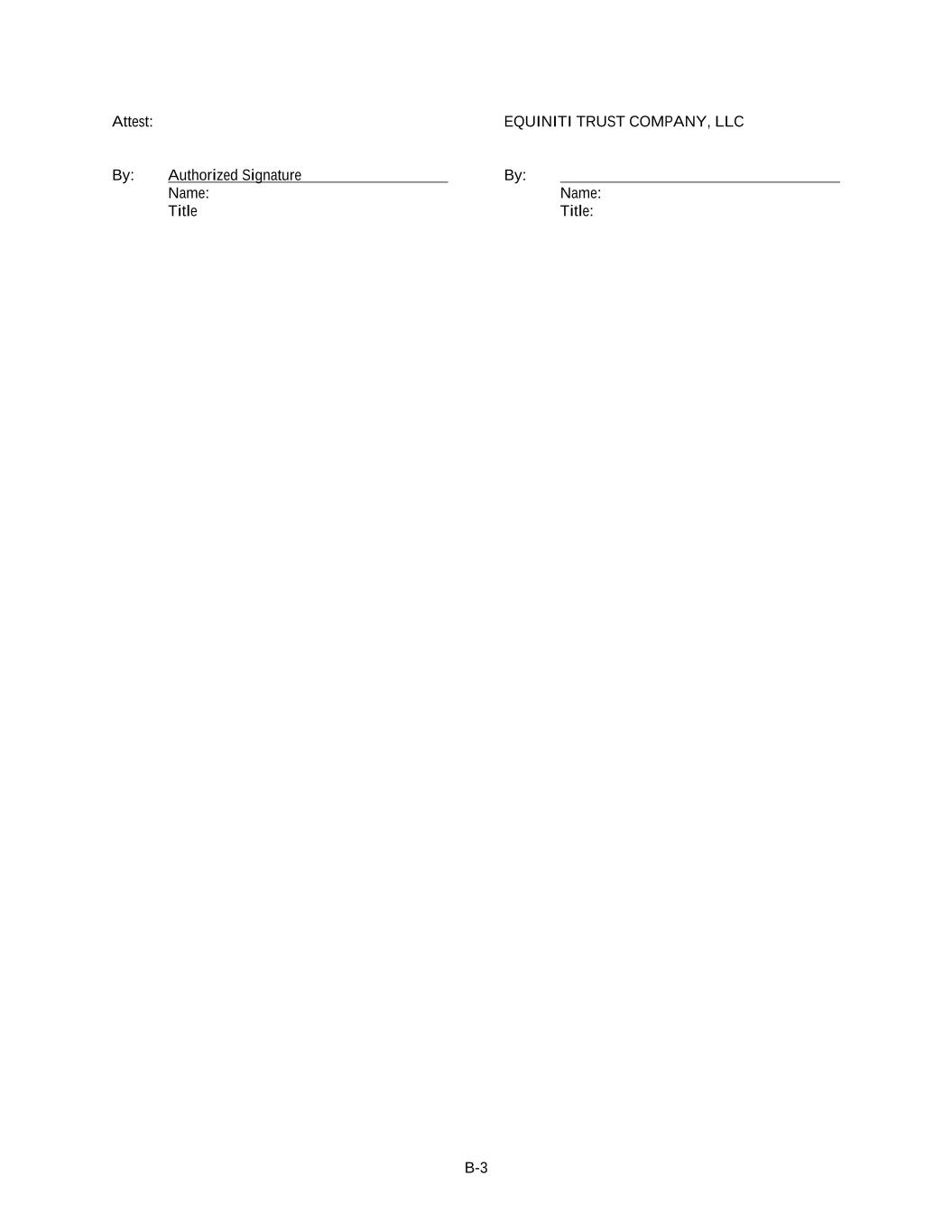 B-3 Attest: EQUINITI TRUST COMPANY, LLC By: Authorized Signature By: Name: Name: Title Title: