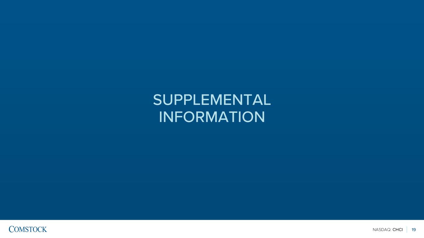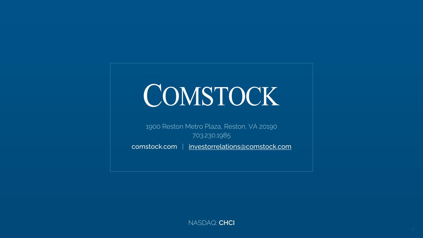 NASDAQ: CHCI 18 1900 Reston Metro Plaza, Reston, VA 20190 703.230.1985 comstock.com | investorrelations@comstock.com NASDAQ: CHCI