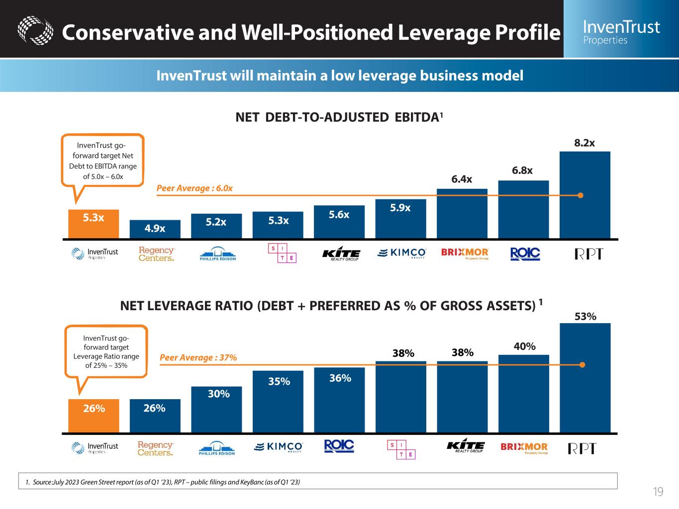 Overview Retail Properties Total GLA Avg. Center Size Sun Belt 1 Avg. TAP Score (Peer Average = 68) 3 63 Grocery-Anchored 1, 2 1. Reflects YTD NOI of properties owned as of June 30, 2023. 2. NOI percentages include shadow-anchored grocery store tenants. Walmart, Target, and warehouse clubs are considered grocers, regardless of whether the box is owned by InvenTrust or shadow anchored. 3. Source: Green Street. Peers include BRX, KIM, KRG, PECO, REG, ROIC, and SITC. 5.0x-6.0x Net Debt-To- Adjusted EBITDA 25%-35% Net Leverage Ratio $1.61-$1.64 Growth of 3% To 4% 2023 Core FFO Per Diluted Share 4.0%-5.0% 2023 SP-NOI Growth 4 10.4M 165K 74 95% 87% 2023 Guidance & Long-Term Targets Portfolio Statistics