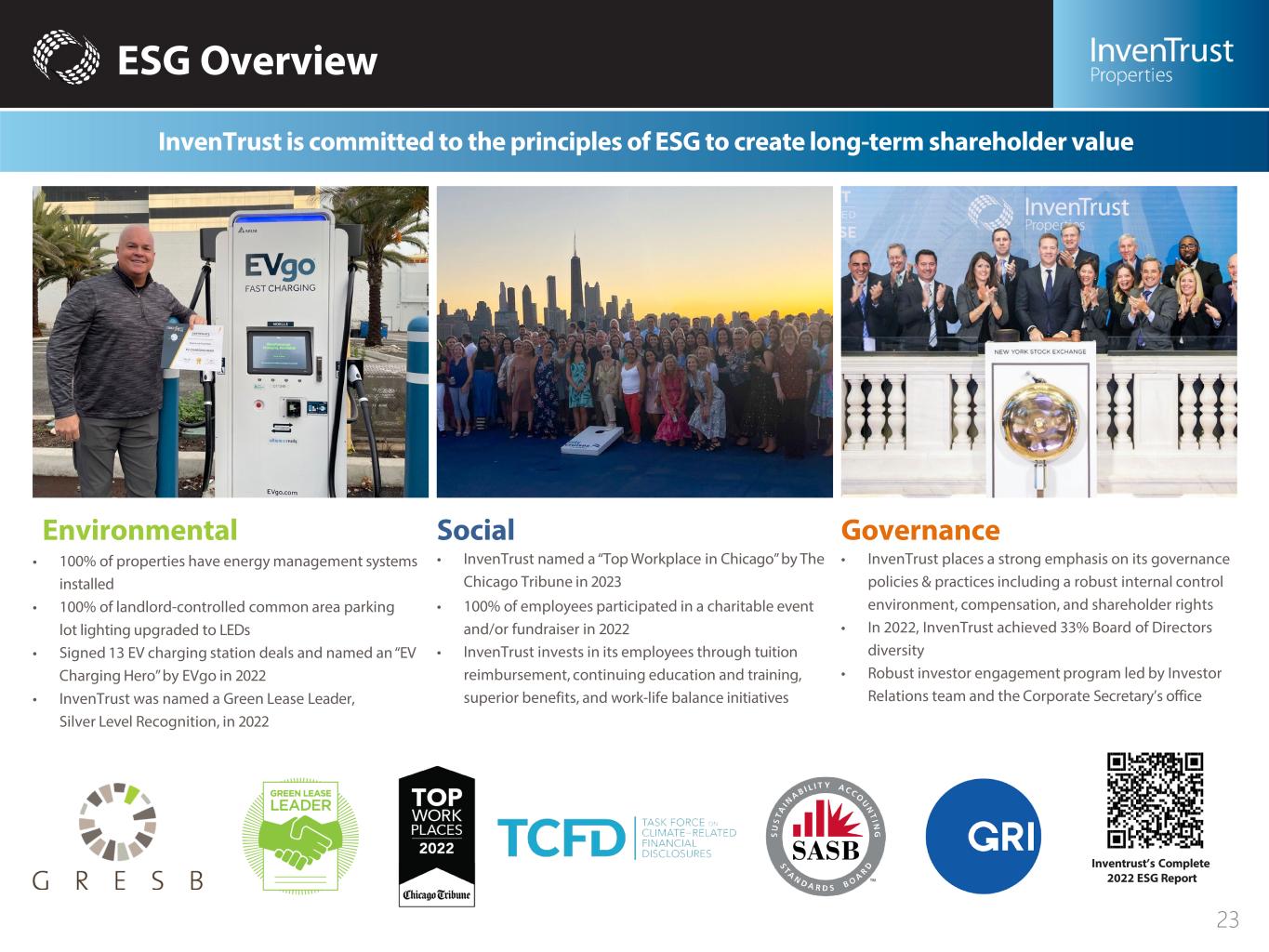 INVENTRUST PROPERTIES CORP. (IVT) Investor Presentation Quarterly Earnings Materials Complete 2022 ESG Report Corporate Office 3025 Highland Parkway | Suite 350 Downers Grove, IL 60515 630.570.0700 info@InvenTrustProperties.com Investor Relations 630.570.0605 InvestorRelations@InvenTrustProperties.com Transfer Agent Computershare 855.377.0510