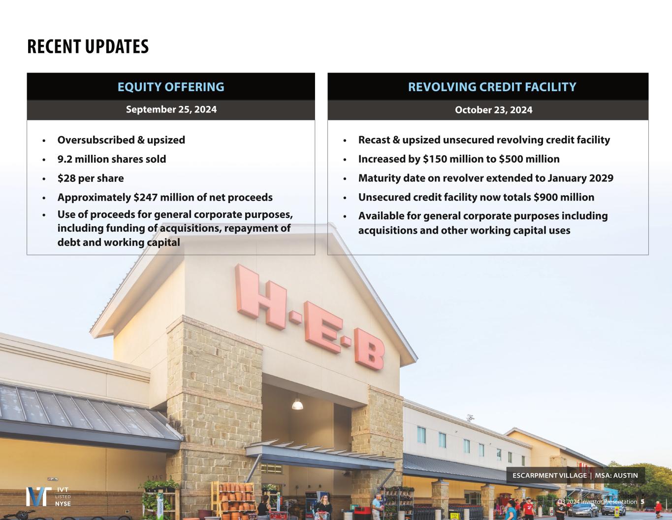 Q3 2024 Investor Presentation 5 RECENT UPDATES Q3 2024 Investor Presentation 5 ESCARPMENT VILLAGE | MSA: AUSTIN EQUITY OFFERING • • • • • REVOLVING CREDIT FACILITY • • • • •