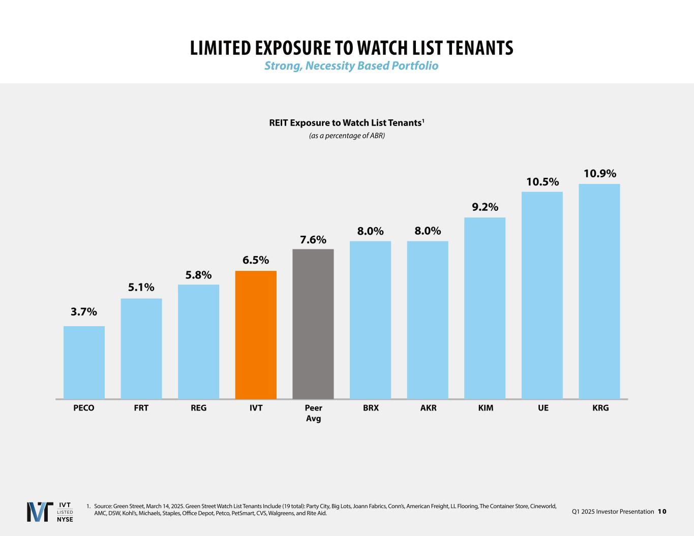 Q1 2025 Investor Presentation 1 0 LIMITED EXPOSURE TO WATCH LIST TENANTS Strong, Necessity Based Portfolio REIT Exposure to Watch List Tenants1 (as a percentage of ABR) 5.1% IVTPECO REGFRT BRX AKR KIM KRG 3.7% 5.8% 6.5% 8.0% 8.0% 9.2% 10.5% 10.9% 1. Source: Green Street, March 14, 2025. Green Street Watch List Tenants Include (19 total): Party City, Big Lots, Joann Fabrics, Conn’s, American Freight, LL Flooring, The Container Store, Cineworld, AMC, DSW, Kohl’s, Michaels, Staples, Office Depot, Petco, PetSmart, CVS, Walgreens, and Rite Aid. UEPeer Avg 7.6%