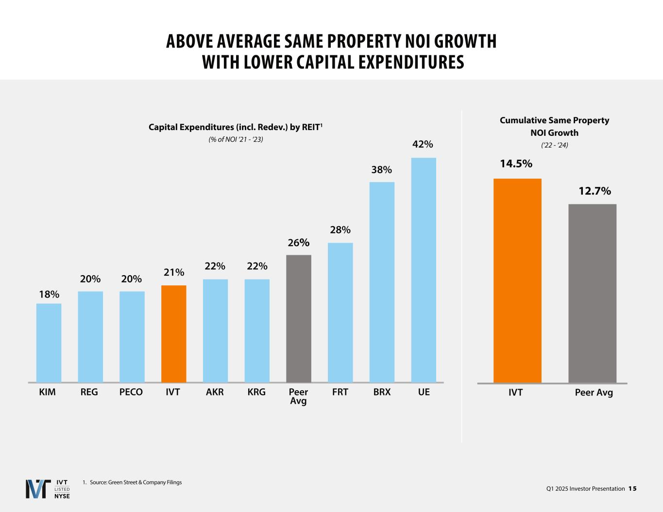 Q1 2025 Investor Presentation 1 5 Cumulative Same Property NOI Growth (‘22 - ‘24) IVT Peer Avg ABOVE AVERAGE SAME PROPERTY NOI GROWTH WITH LOWER CAPITAL EXPENDITURES 1. Source: Green Street & Company Filings 14.5% 12.7% Capital Expenditures (incl. Redev.) by REIT1 (% of NOI ‘21 - ‘23) 21% IVT 26% Peer Avg BRXREG PECO 20% KIM 18% KRG 22% 42% AKR 22% 20% 28% FRT 38% UE