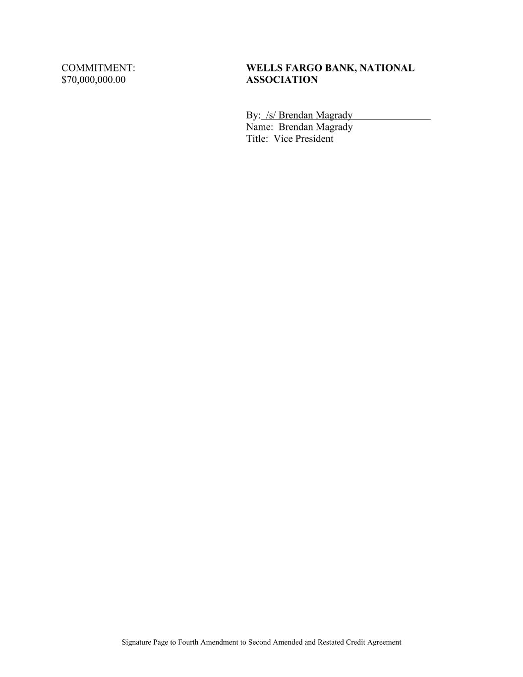 Signature Page to Fourth Amendment to Second Amended and Restated Credit Agreement COMMITMENT: WELLS FARGO BANK, NATIONAL $70,000,000.00 ASSOCIATION By: /s/ Brendan Magrady Name: Brendan Magrady Title: Vice President