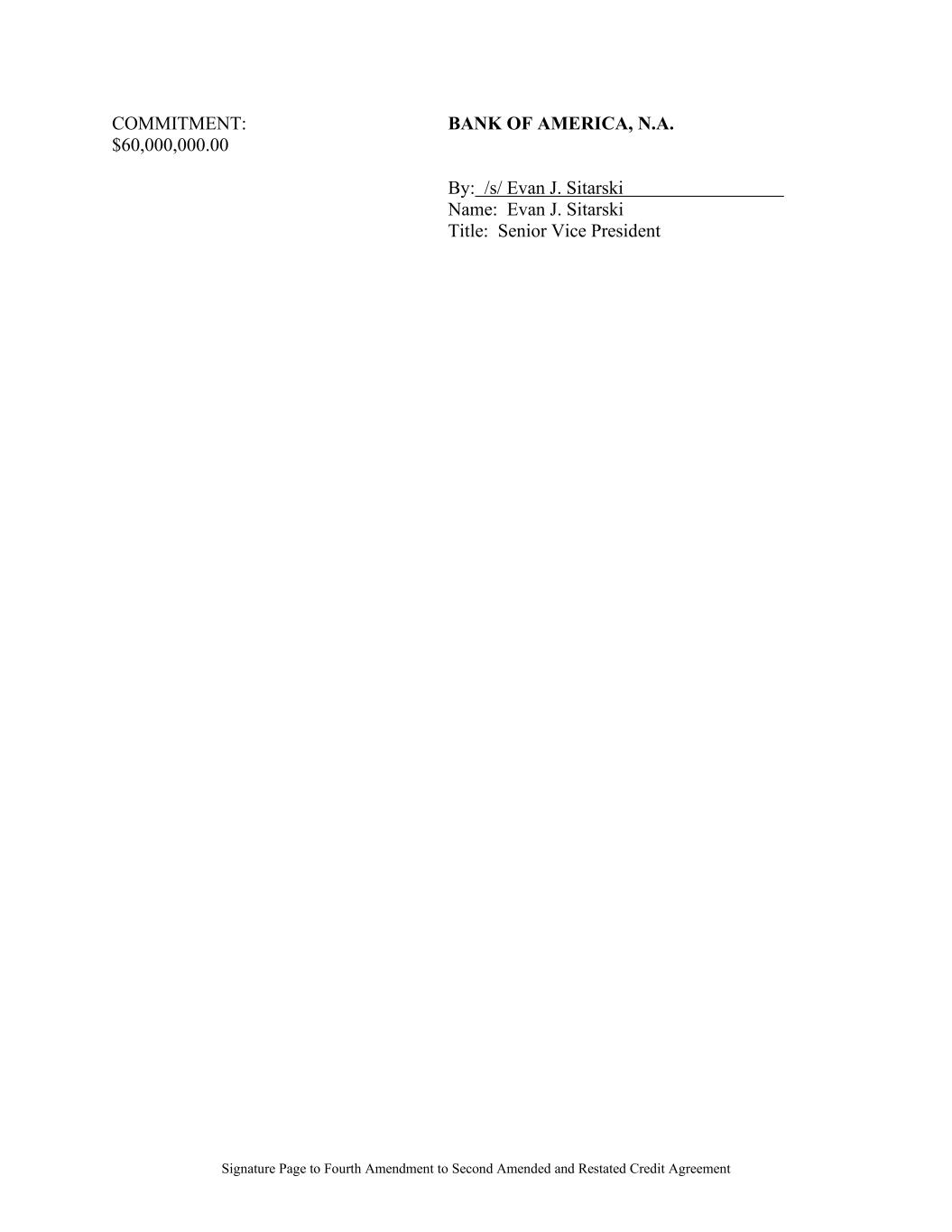 Signature Page to Fourth Amendment to Second Amended and Restated Credit Agreement COMMITMENT: BANK OF AMERICA, N.A. $60,000,000.00 By: /s/ Evan J. Sitarski Name: Evan J. Sitarski Title: Senior Vice President
